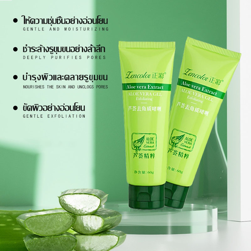 เจลว่านหางจระเข้ เจลว่านหางจระเข้ขัดผิว 60g กำจัดเซล์ผิวที่ตายแล้ว ช่วยกระชับรูขุมขน ลดสิวหัวดํา ว่านหางจระเข้ (737)