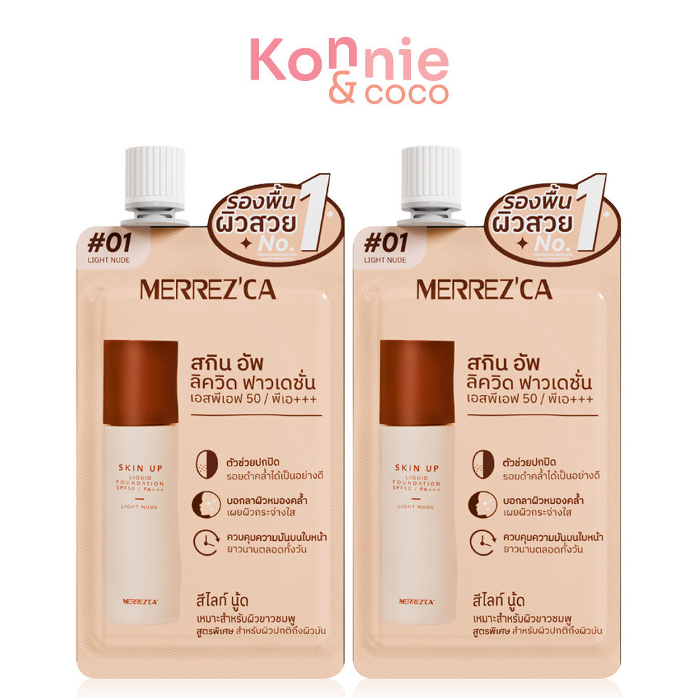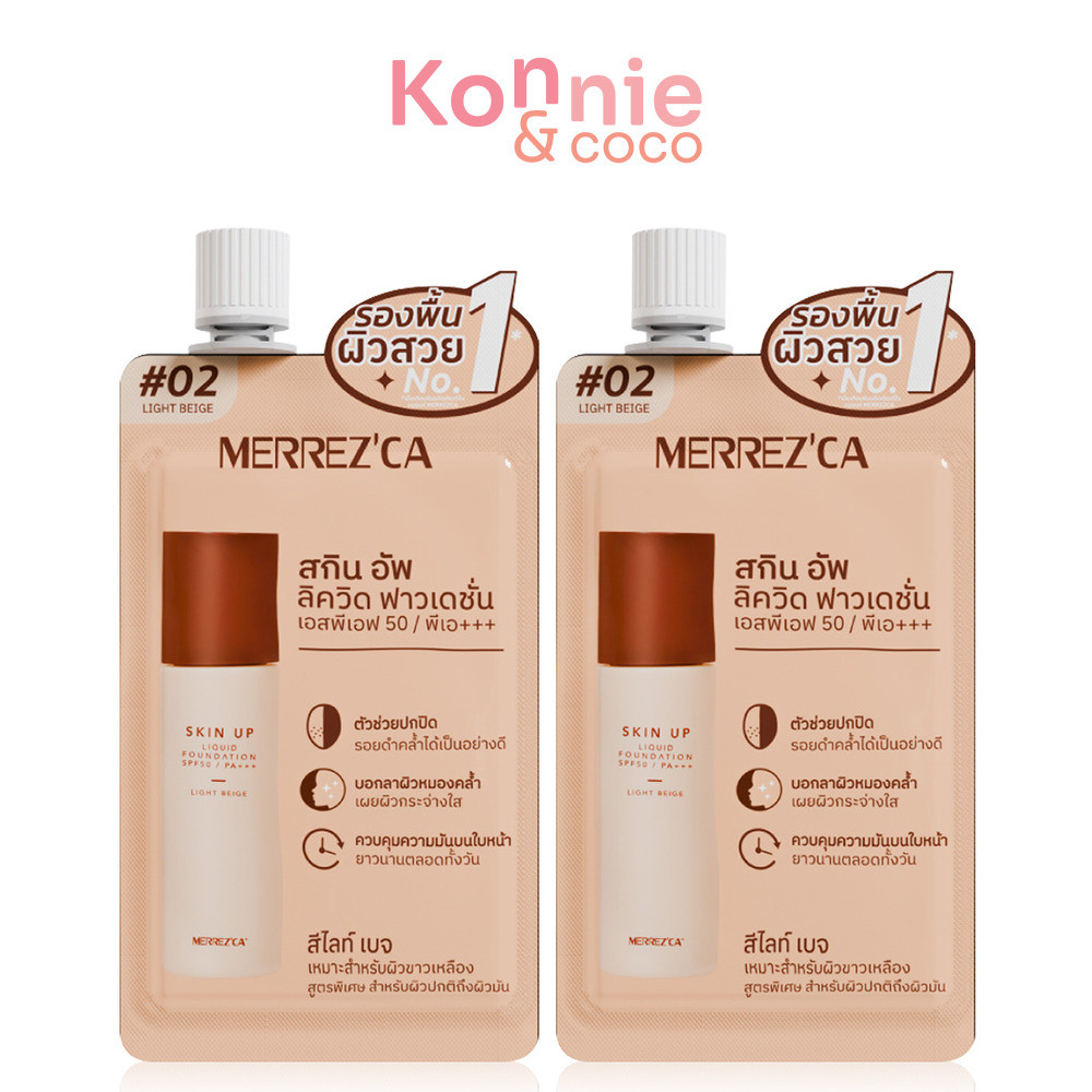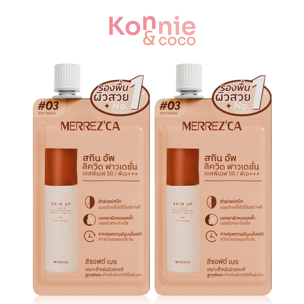 Merrezca Skin Up Liquid Foundation Sachet SPF50 PA+++ [5g x 2pcs] #03 Soft Beige รองพื้นเนื้อลิควิด สูตรใหม่ แบบซอง.