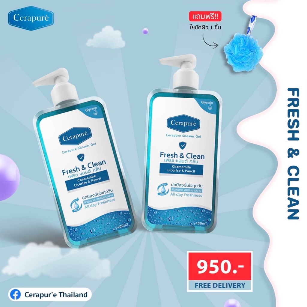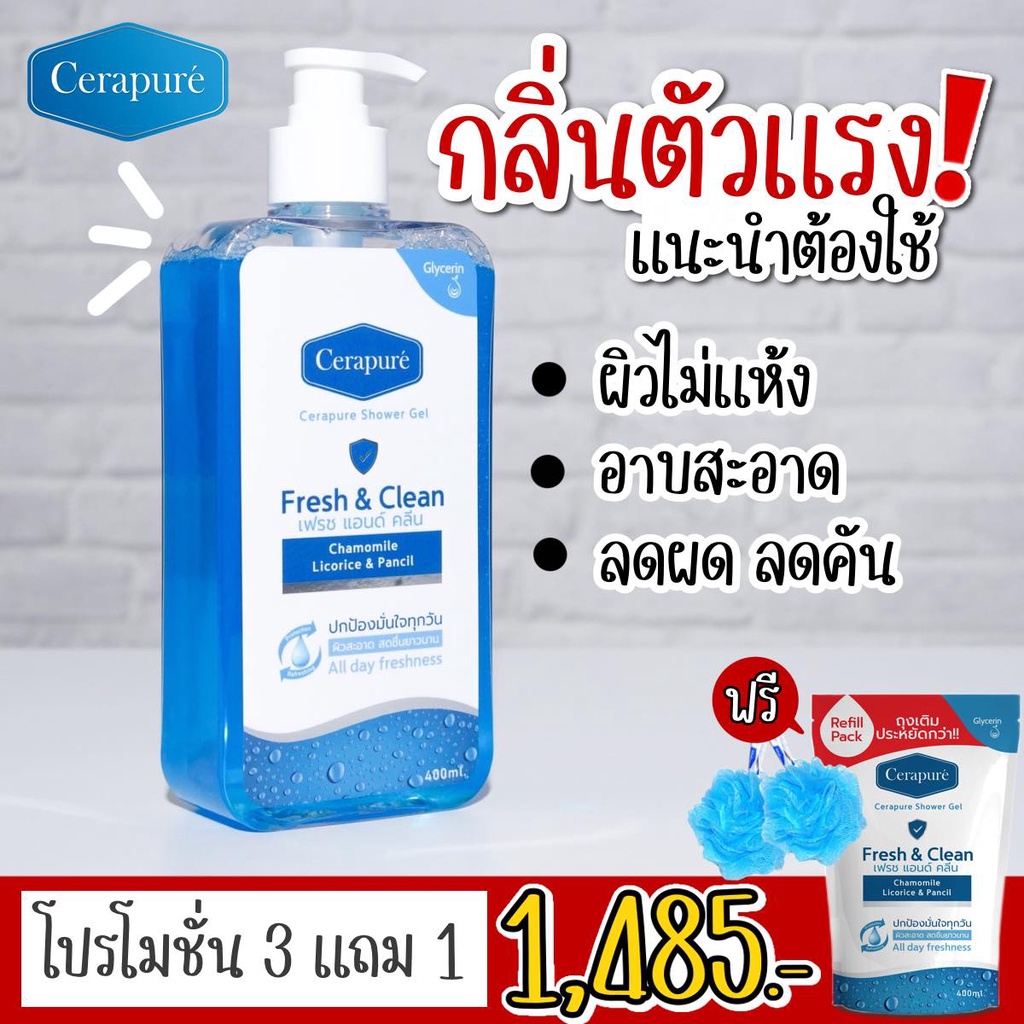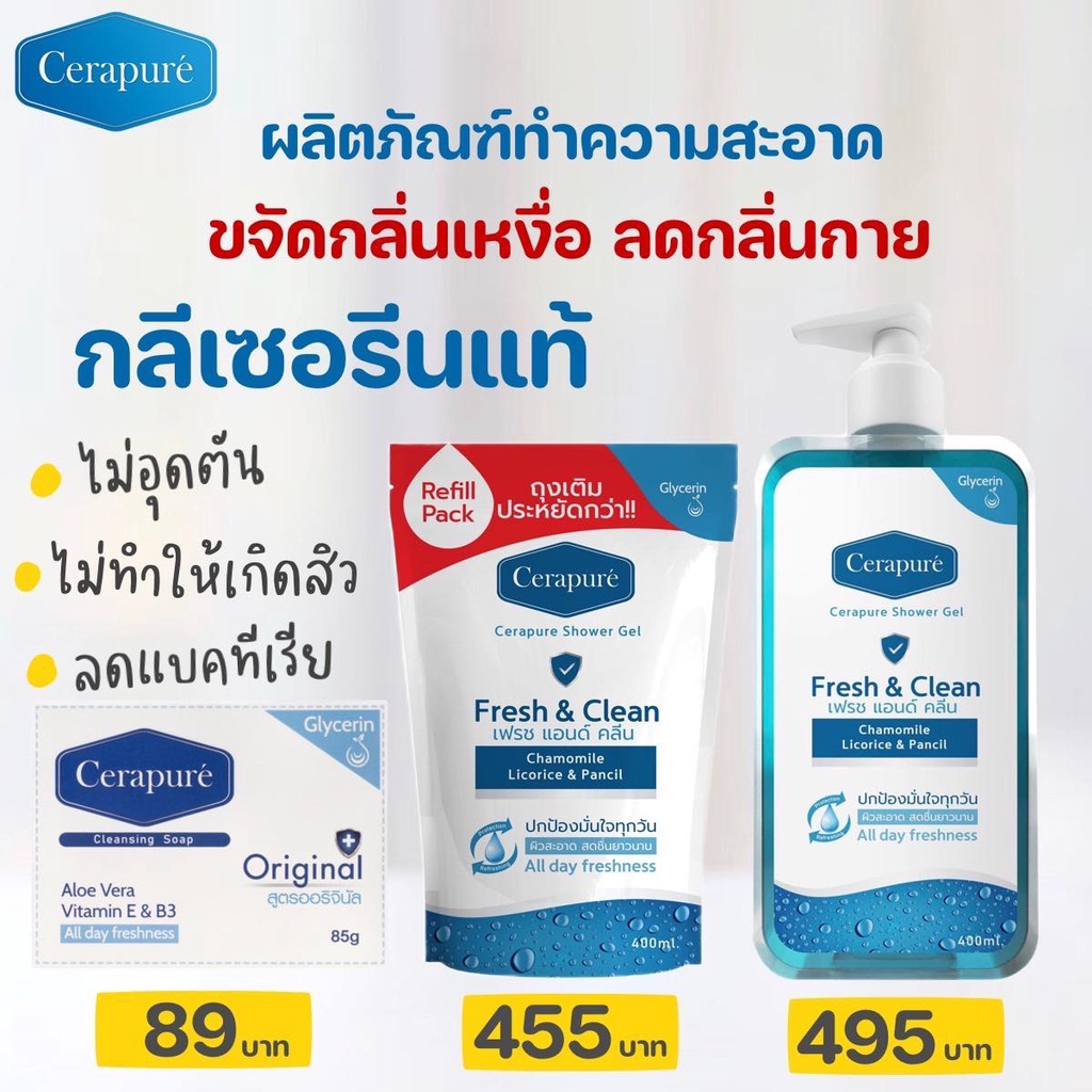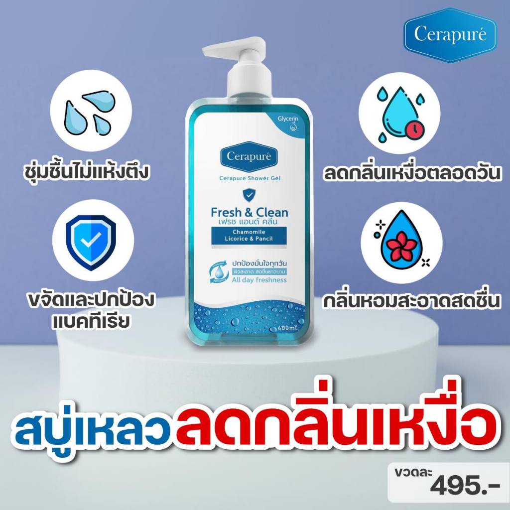 Cerapure Shower gel สบู่เหลว เจลอาบน้ำ เซราพิวเร่ ระงับกลิ่นกาย ของแท้ พร้อมส่ง ขนาด 400 ml