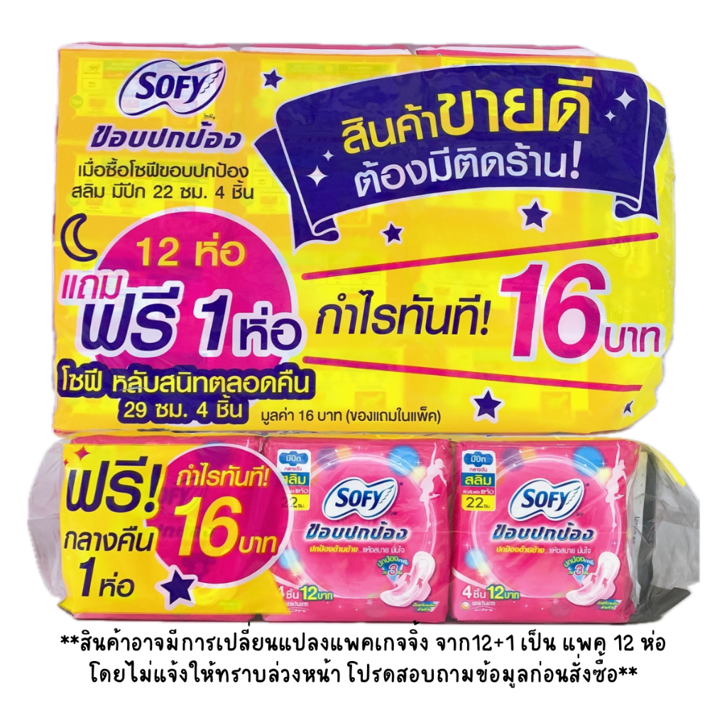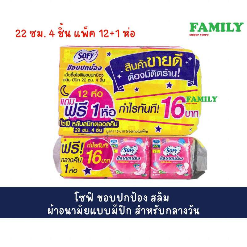 (แพคโหล) Sofy โซฟี ผ้าอนามัย ((ขอบปกป้อง)) สลิม มีปีก 22ซม สำหรับกลางวัน ห่อ 4ชิ้น (แพ็ค 12ห่อ+1)