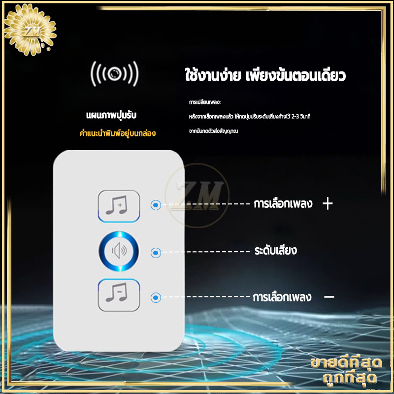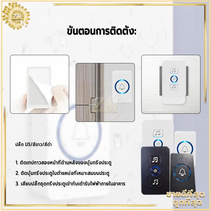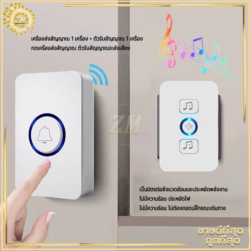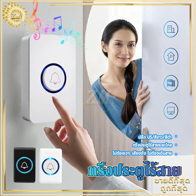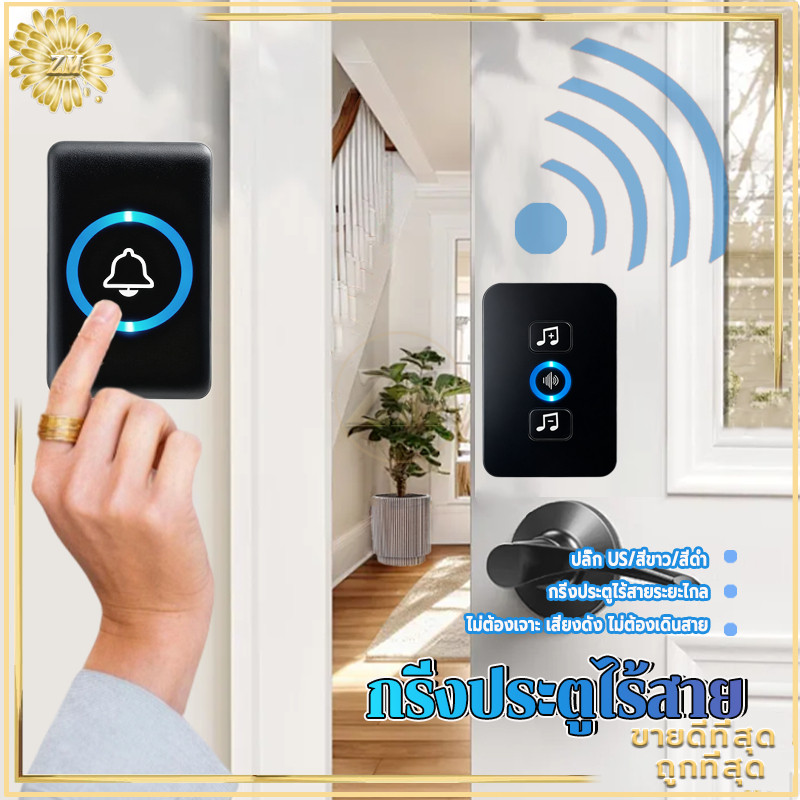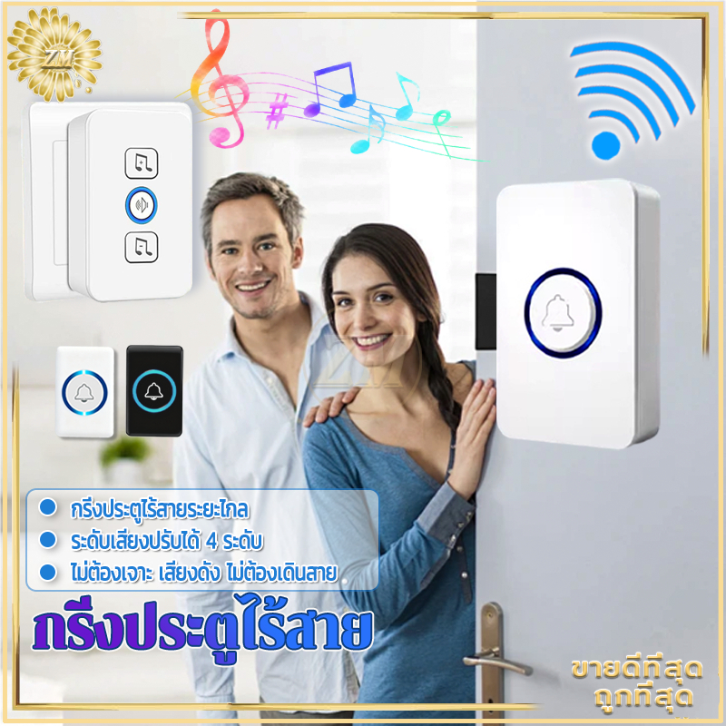 กริ่งประตูไร้สาย กริ่งไร้สาย กระดิ่งประตู กันน้ำและฝุ่นระยะรับสัญญาณกว้าง ปรับระดับเสียงได้ 4ระดับ ติดตั้งโดยไม่ต้องเจาะ