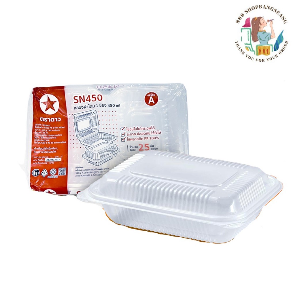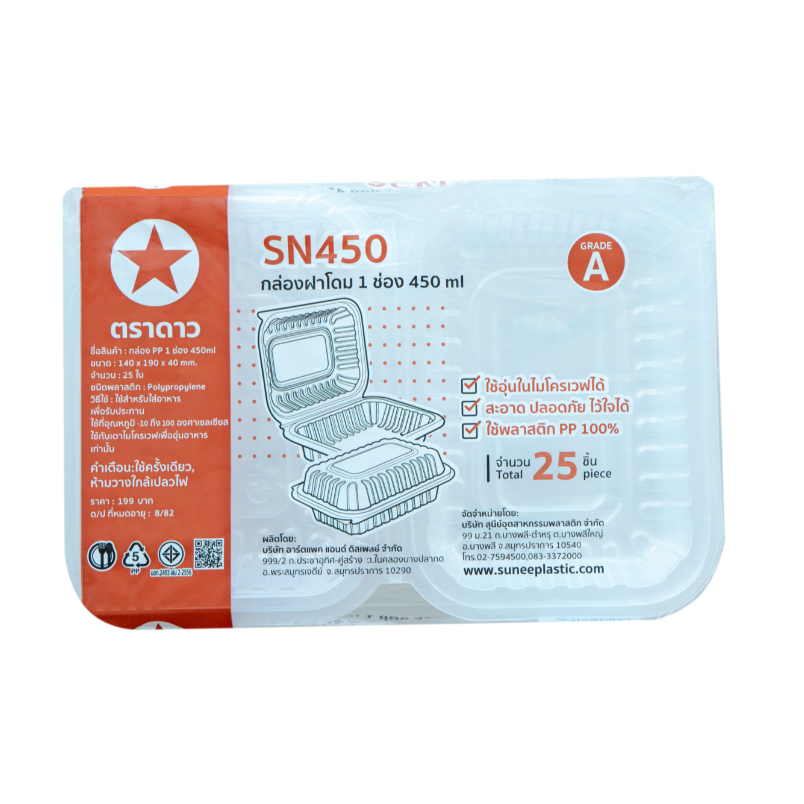 กล่องฝาโดม 1ช่อง 450ml ตราดาว ฝาล็อคได้ SN450 แพ็ค/25ใบ