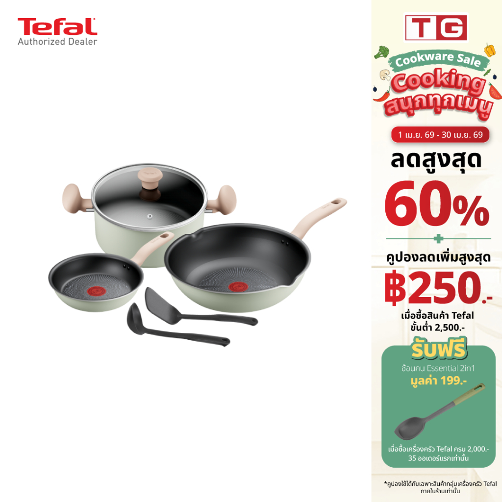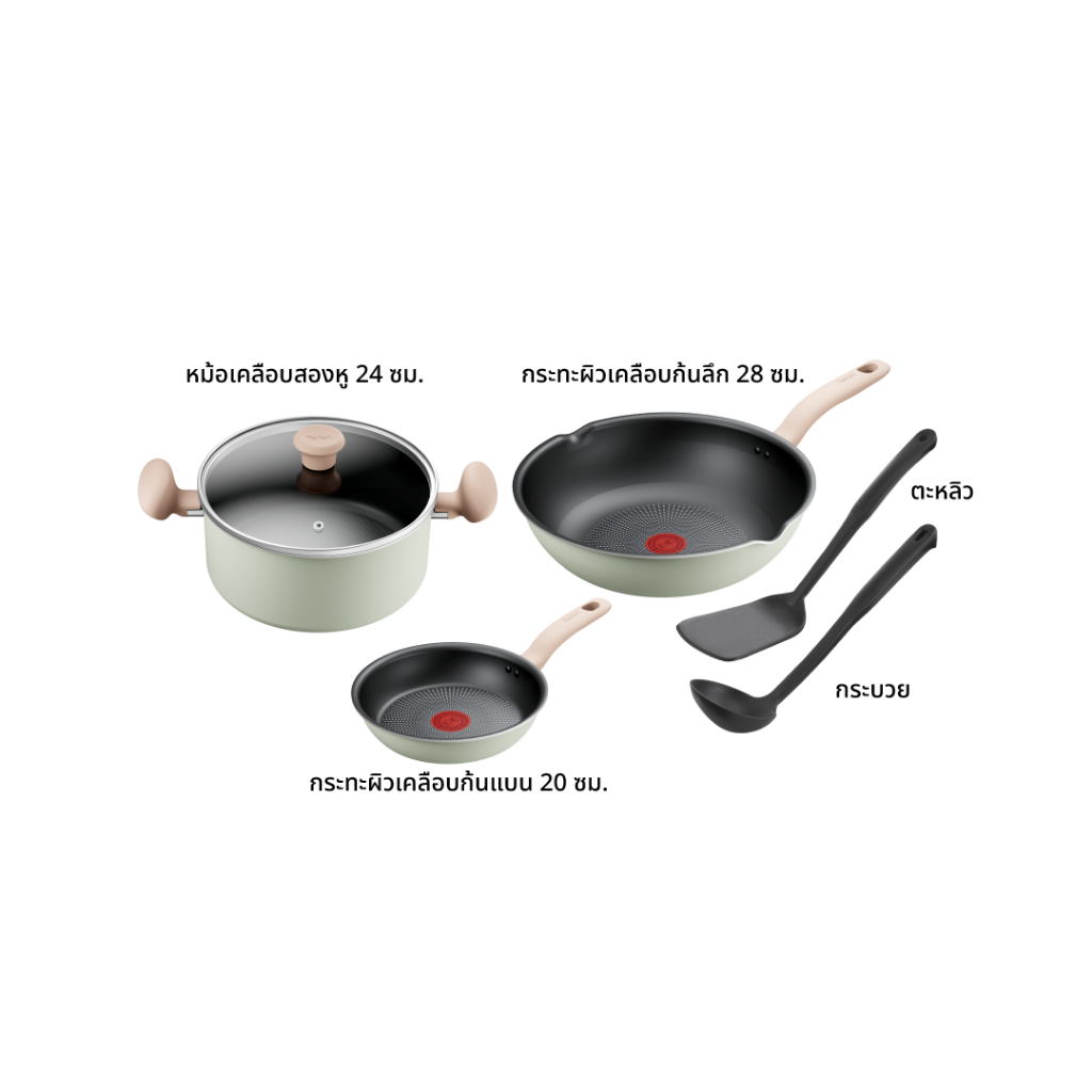 TEFAL ชุดเครื่องครัว So Matcha รุ่น G179S695 6 ชิ้น สีเขียวอ่อน รับประกันศูนย์ 2ปี