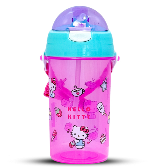 กระติกน้ำเด็กคล้องคอแบบหลอดดูด รุ่นฝาเด้ง ลายการ์ตูน ขนาด 500มล. ลิขสิทธิ์แท้100%