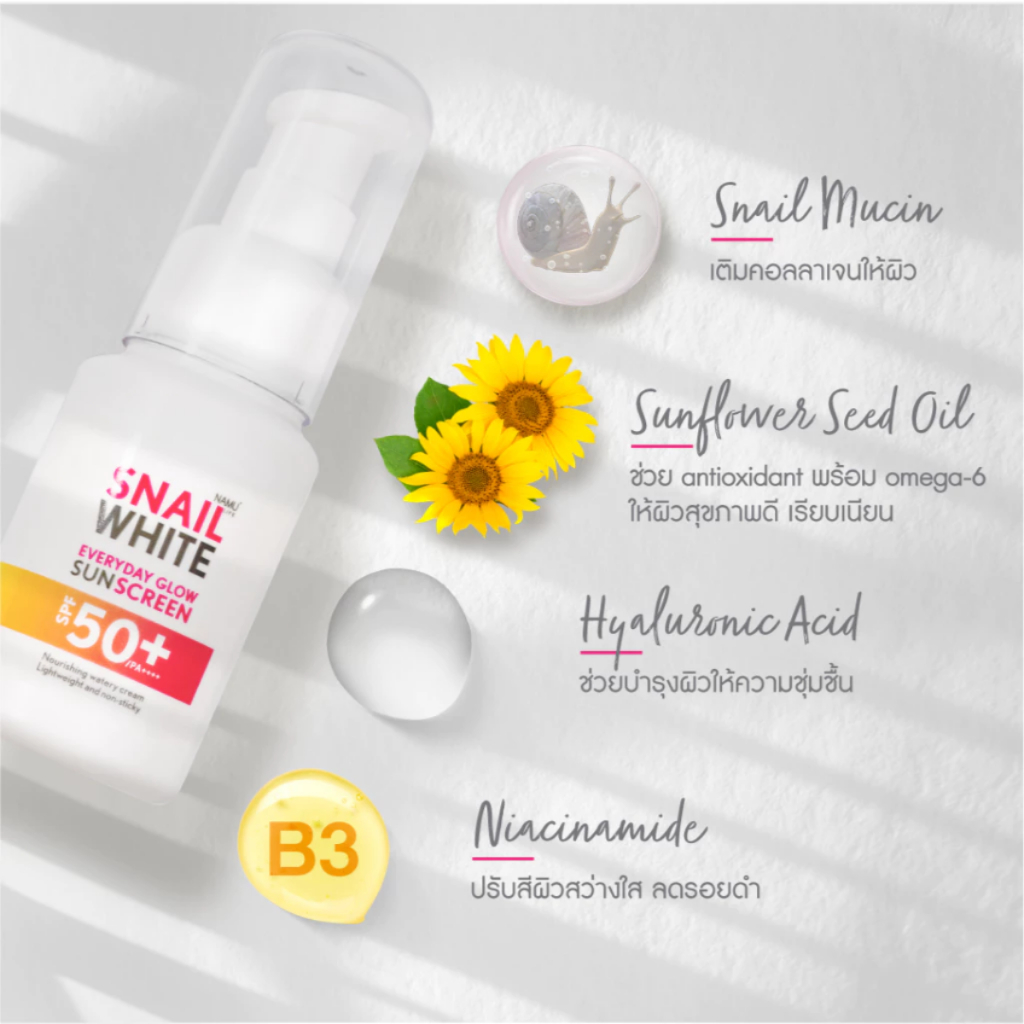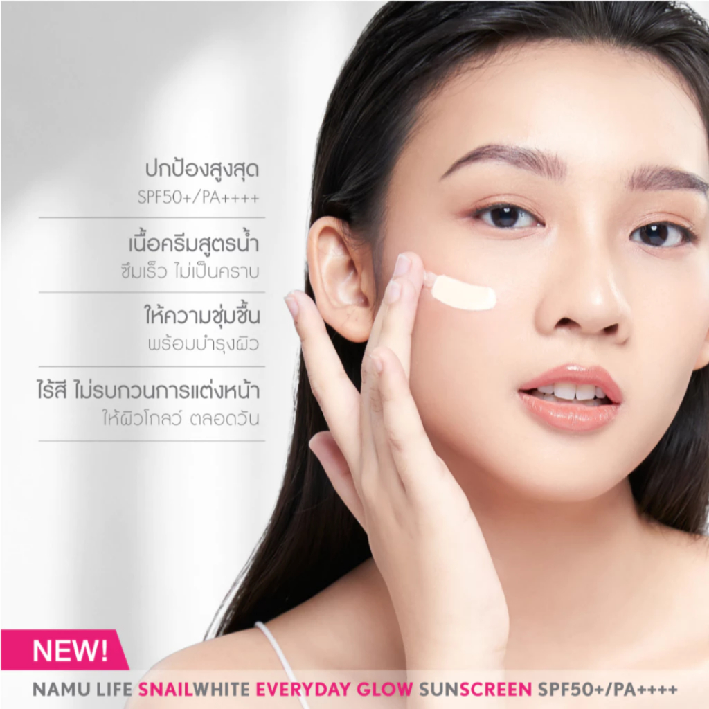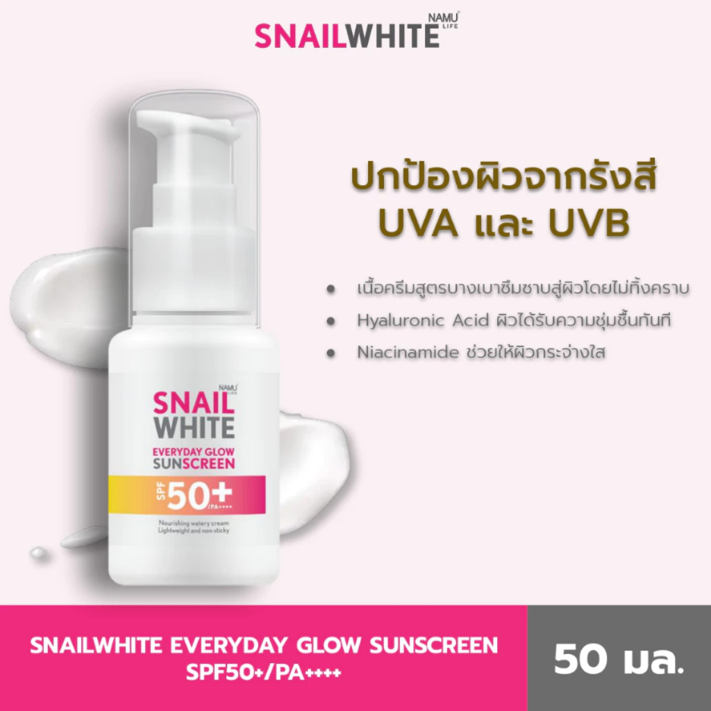 นามุ ไลฟ์ สเนลไวท์ เอฟวรี่เดย์ โกลว์ ซันสกรีน SNAILWHITE EVERYDAY GLOW SUNSCREEN SPF50+/PA++++ 50 ml