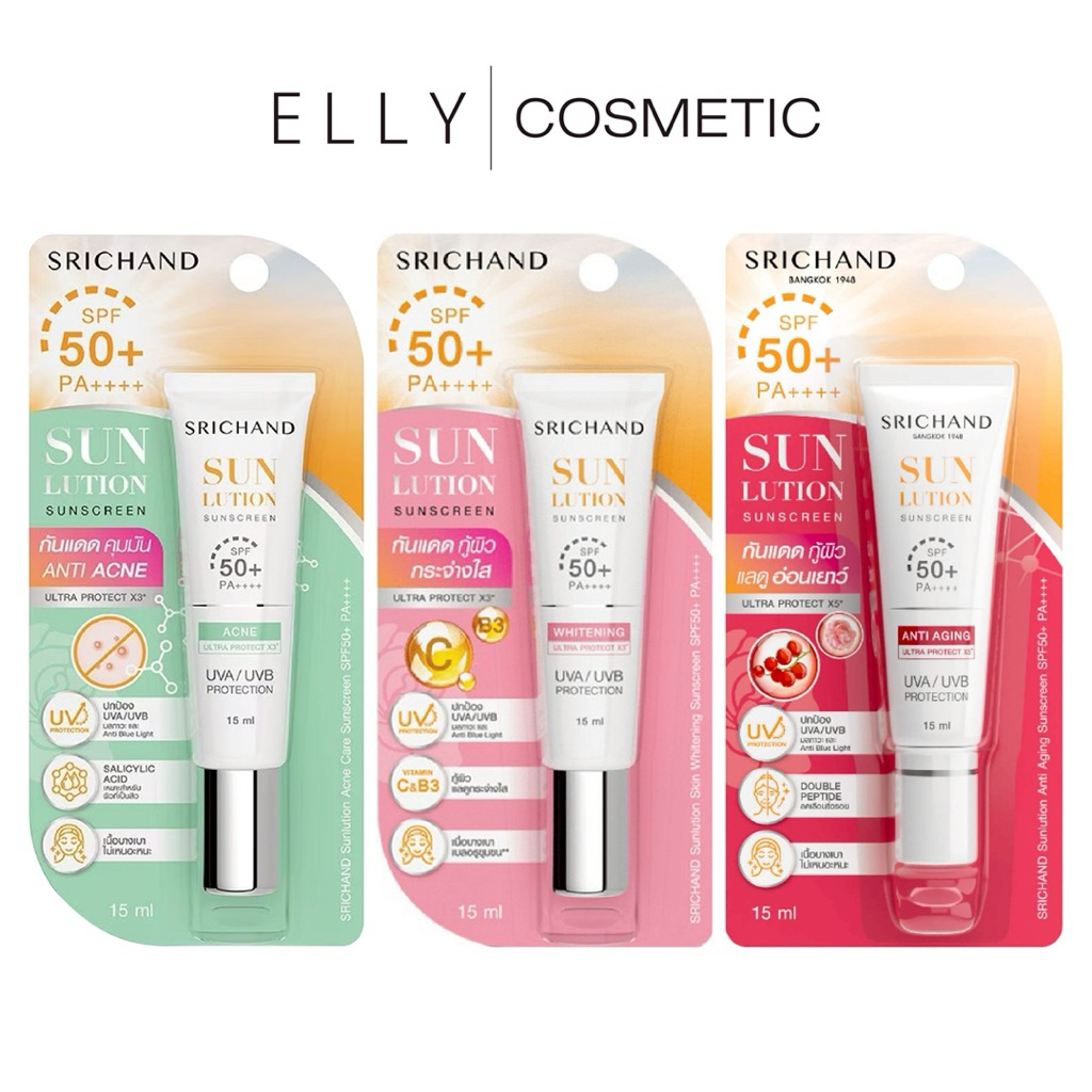 (หลอด) Srichand Sunlution Skin Sunscreen SPF50 ศรีจันทร์ ซันโซลูชั่น กันแดดหลอด