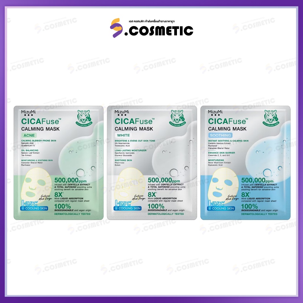 [แผ่น] Mizumi มิซึมิ ซิก้าฟิวส์ คาร์มมิ่ง มาสก์ ขนาด 30 มล. (มีให้เลือก 4 เเบบ)