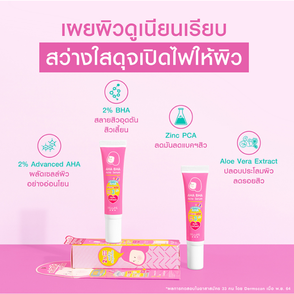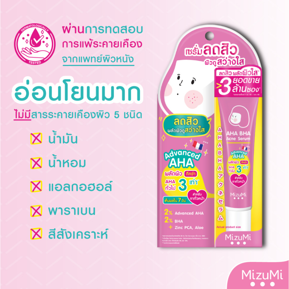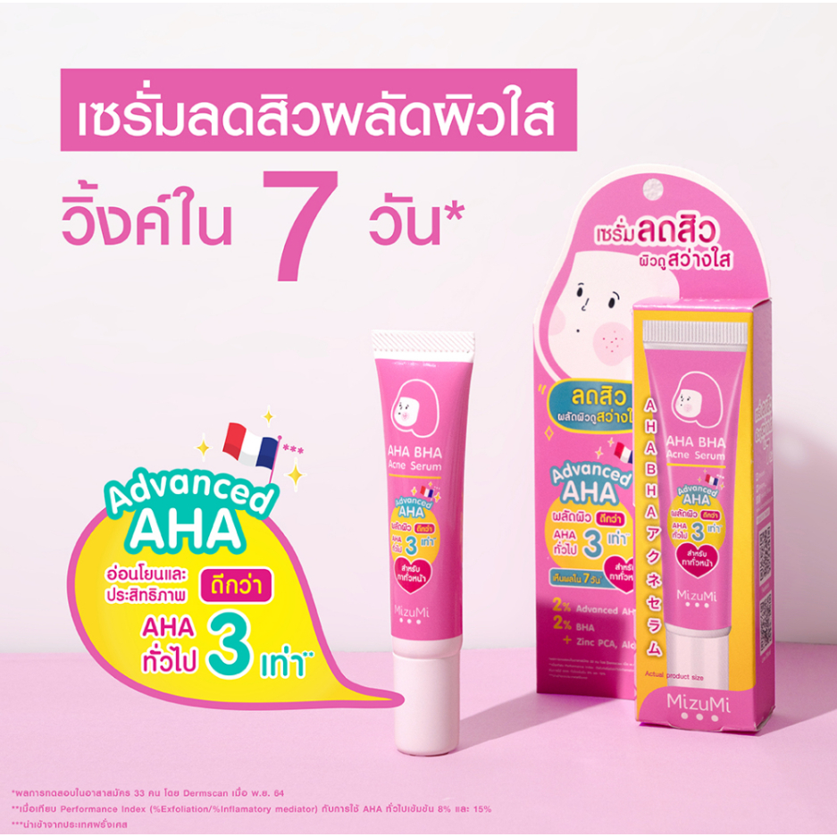 (13g.) MizuMi AHA BHA Acne Serum มิซึมิ เซรั่มลดสิว เผยผิวดูเนียนเรียบ (หลอดชมพู) [0287]
