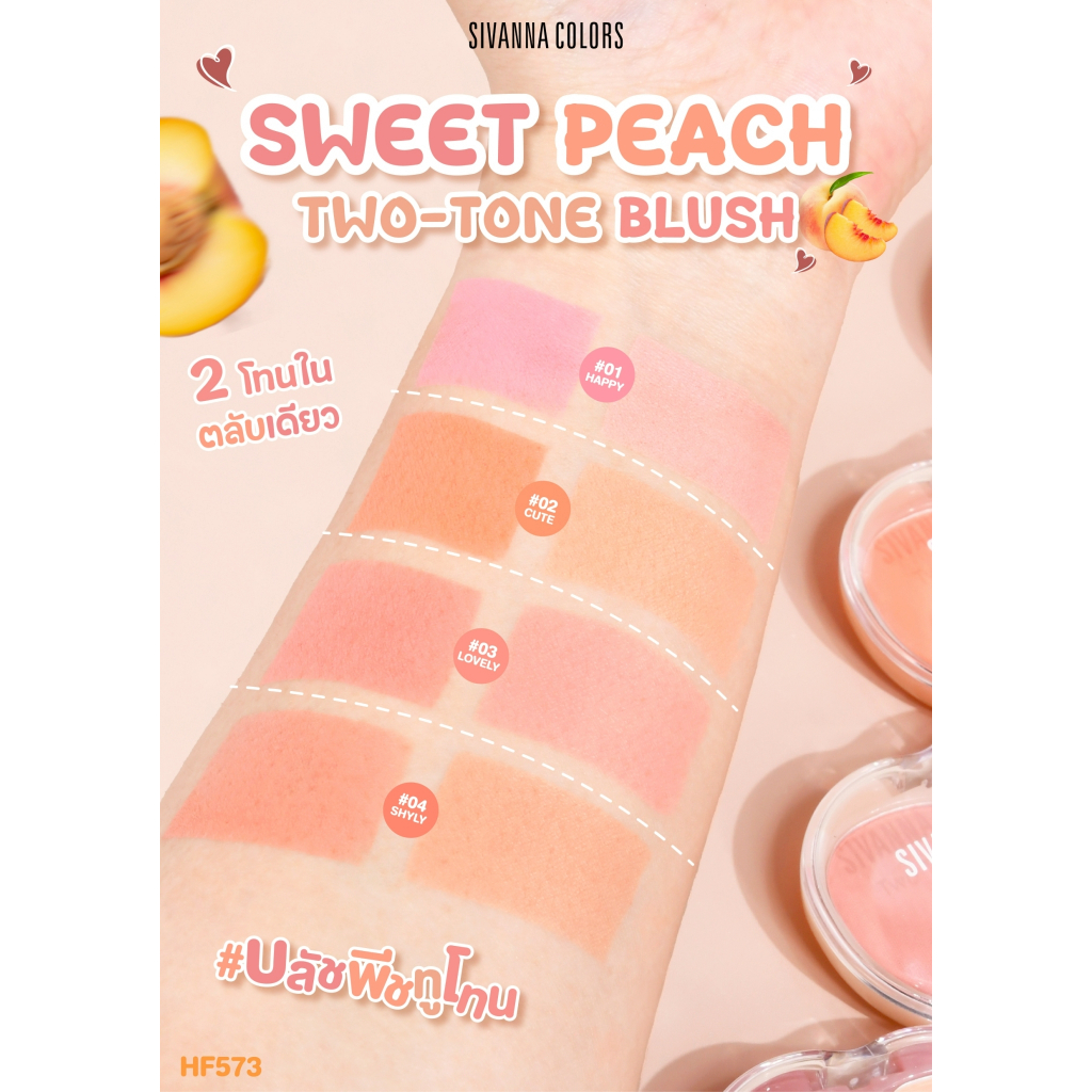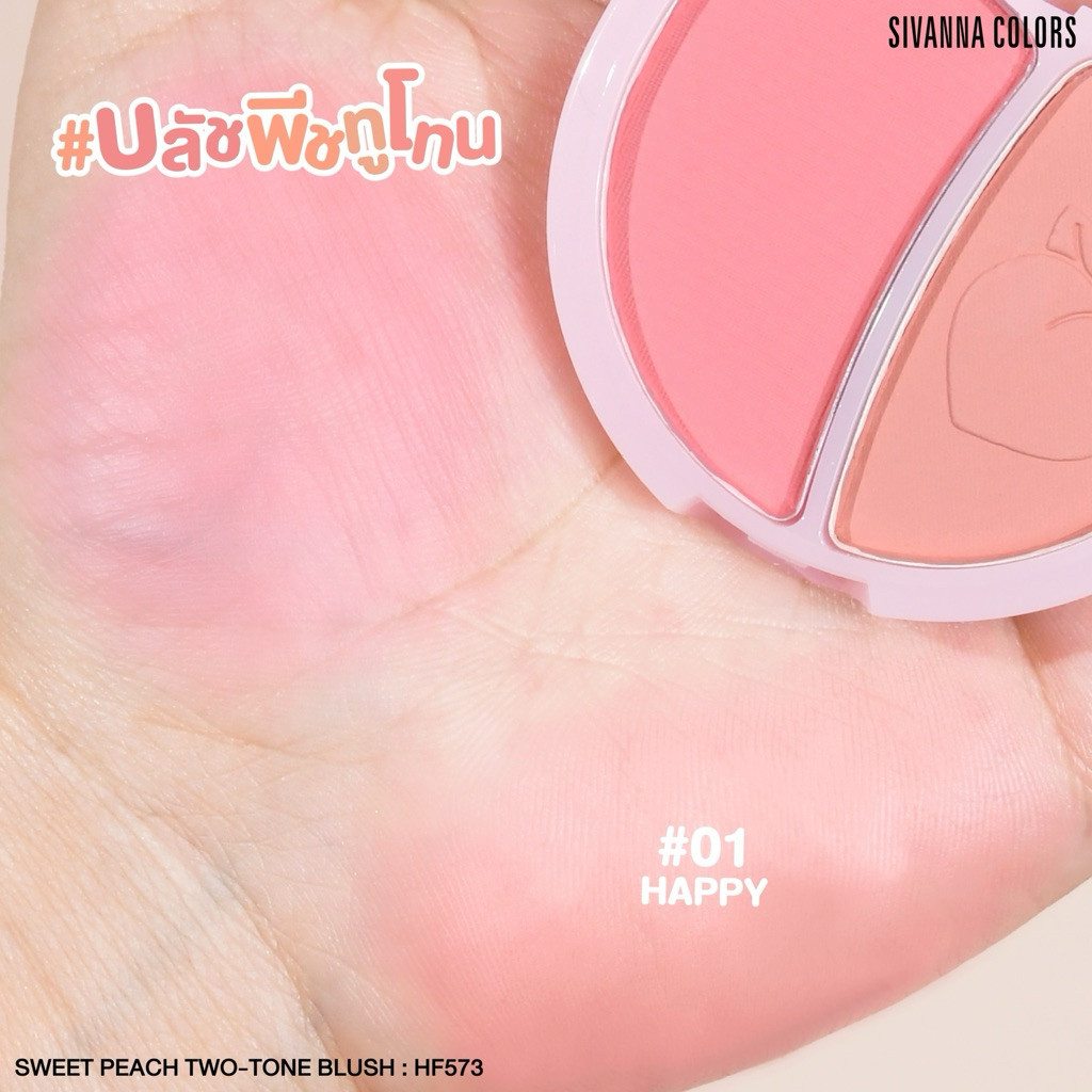 (1ชิ้น) HF573 SIVANNA COLORS SWEET PEACH TWO-TONE BLUSH บลัชออน 2 โทนสีในตลับเดียว