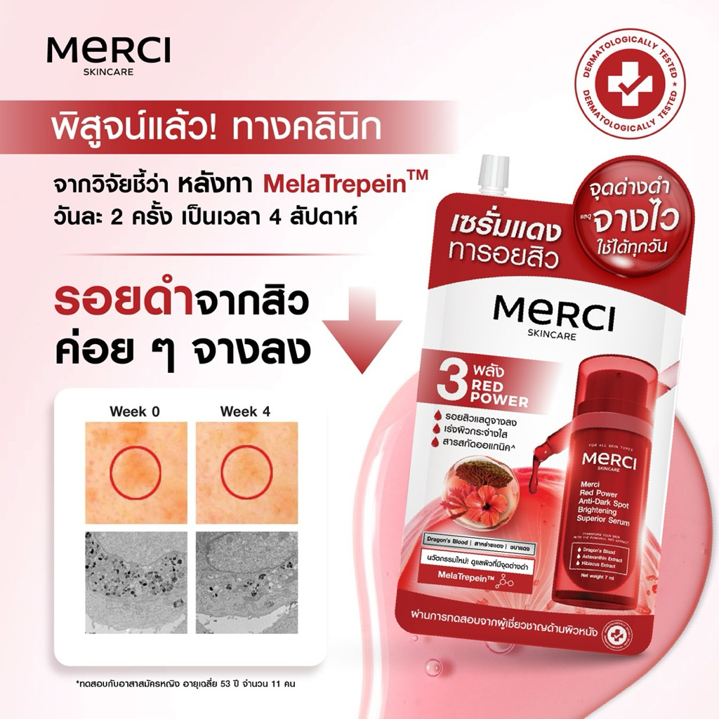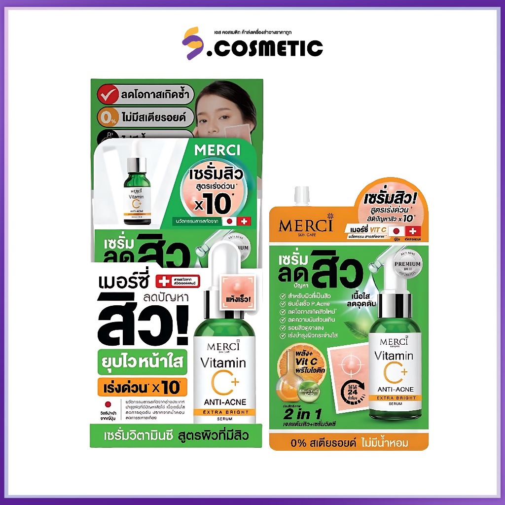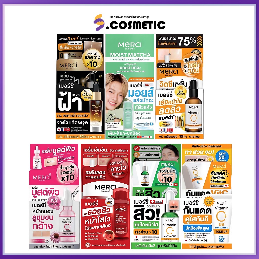 [ยกกล่อง*6 ซอง] Merci เมอร์ซี่ สกินแคร์ วิตามินซี แอนตี้-แอคเน่ ดาร์คสปอต เซรั่ม กลาสกิน ยูวีซันสกรีน 5-6 มล.