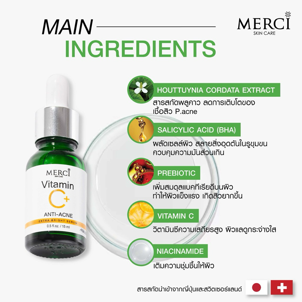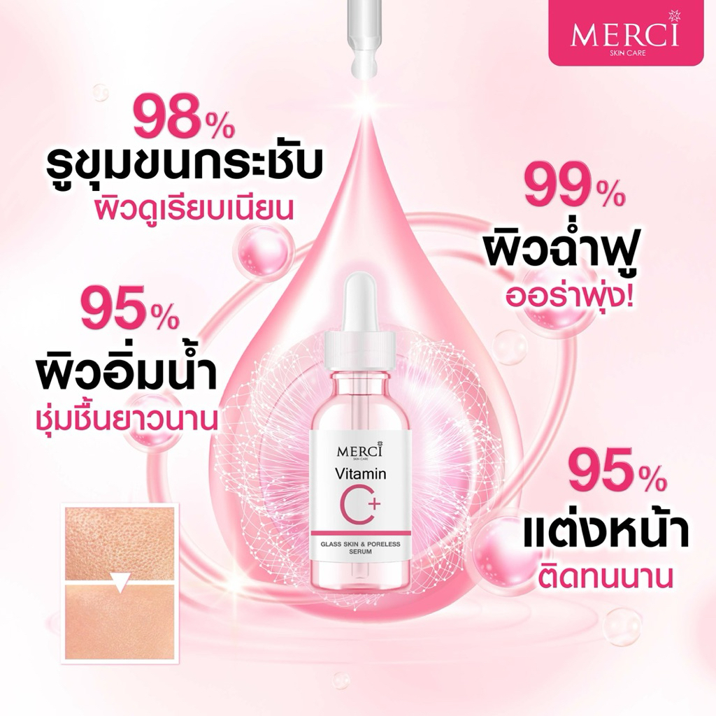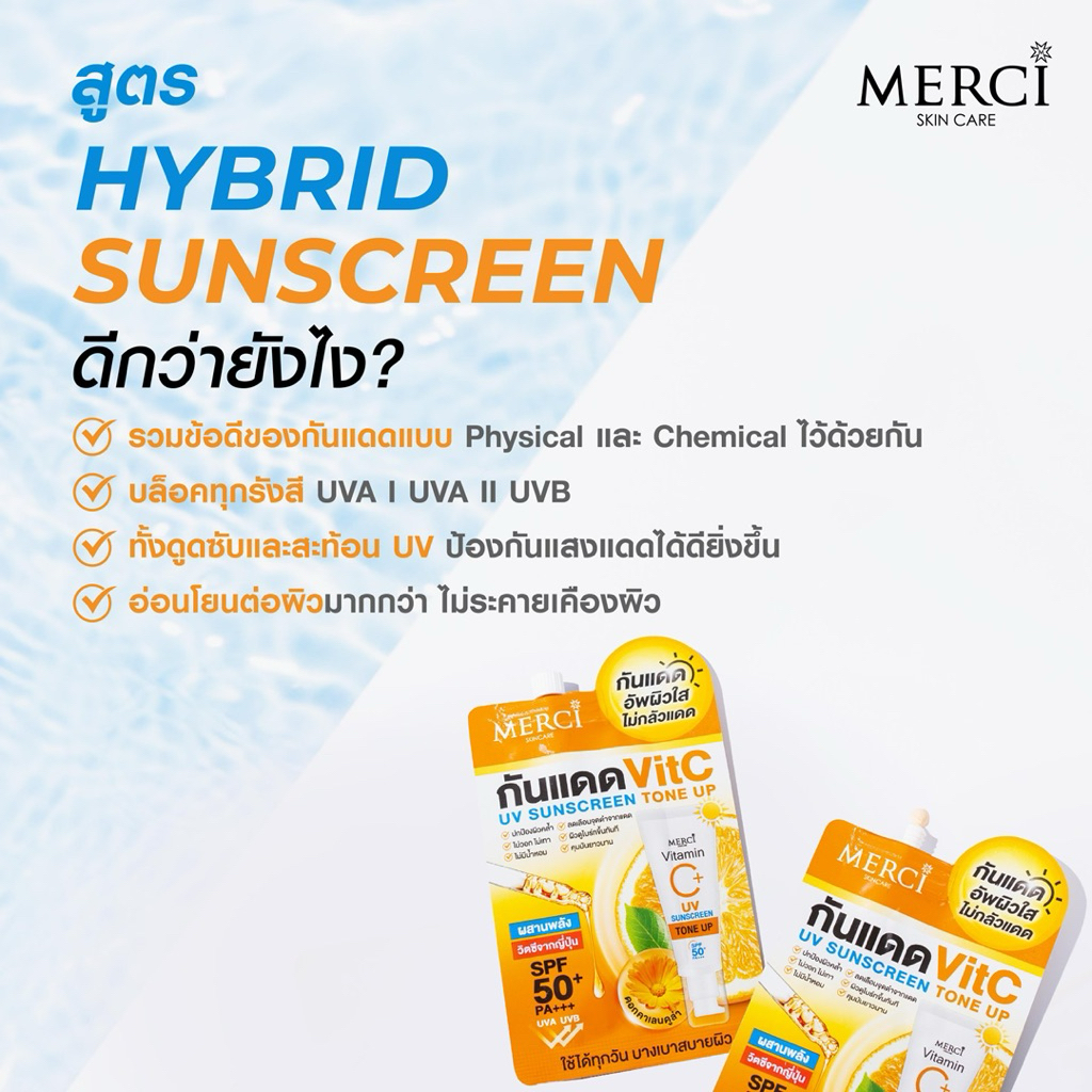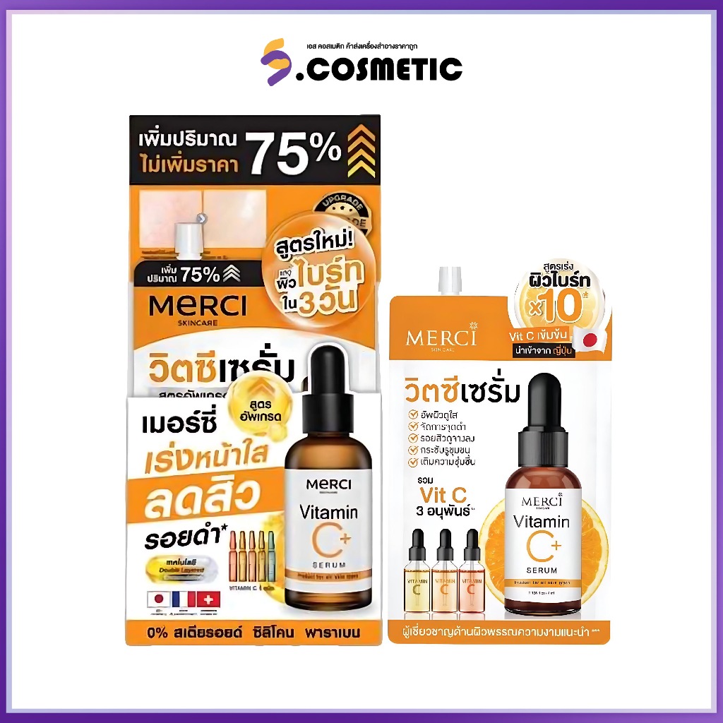[ยกกล่อง*6 ซอง] Merci เมอร์ซี่ สกินแคร์ วิตามินซี แอนตี้-แอคเน่ ดาร์คสปอต เซรั่ม กลาสกิน ยูวีซันสกรีน 5-6 มล.
