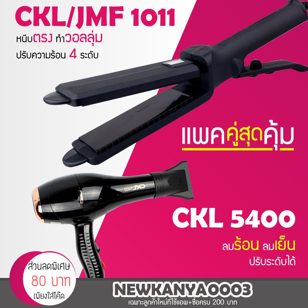 LIC 🔥 แพคคู่สุดคุ้ม 🔥เครื่องหนีบผม JMF 1011 หรือ CKL 1011 ที่หนีบผม หนีบผมตรง+ไดร์เป่าผม เครื่องเป่าผม CKL 5400 ไดร์ช่าง