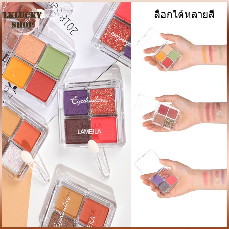 Lameila อายชาโดว์ พาเลทอายแชโดว์ 4 สี สีเป็นธรรมชาติ การแต่งหน้าติดทนนาน ประกายมุก เนื้อแมตต์ กลิตเตอร์(1297)