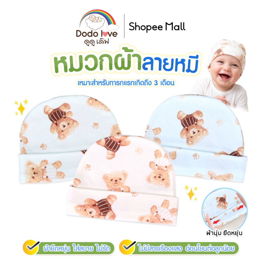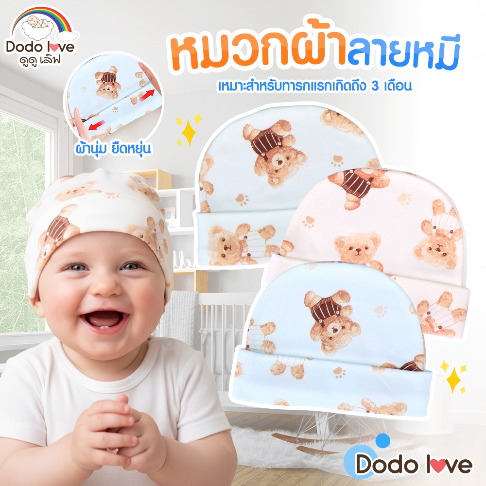 Dodolove หมวกเด็ก หมวกผ้า ลายหมี เหมาะสำหรับทารกแรกเกิด - 3 เดือน สำหรับ เด็กชาย เด็กหญิง เด็กอ่อน