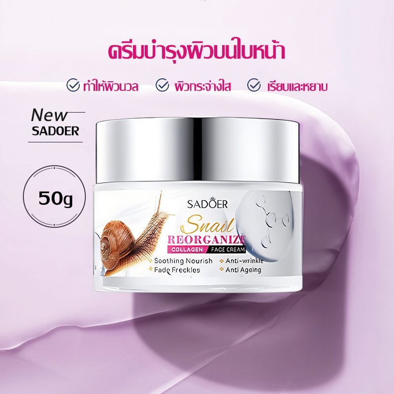 SADOER SNAIL RECONDIZE COLLAGEN FACE CREAM ครีมทาผิวหน้า 50 g กระปุกขาวชมพู