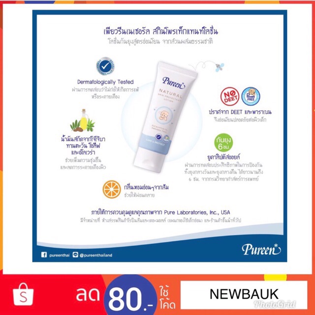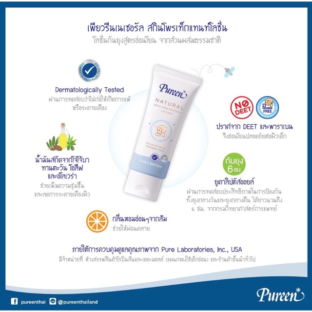 โลชั่นกันยุงเพียวรีน Pureen Natural Skin Protectant Lotion ขนาด 40มล.