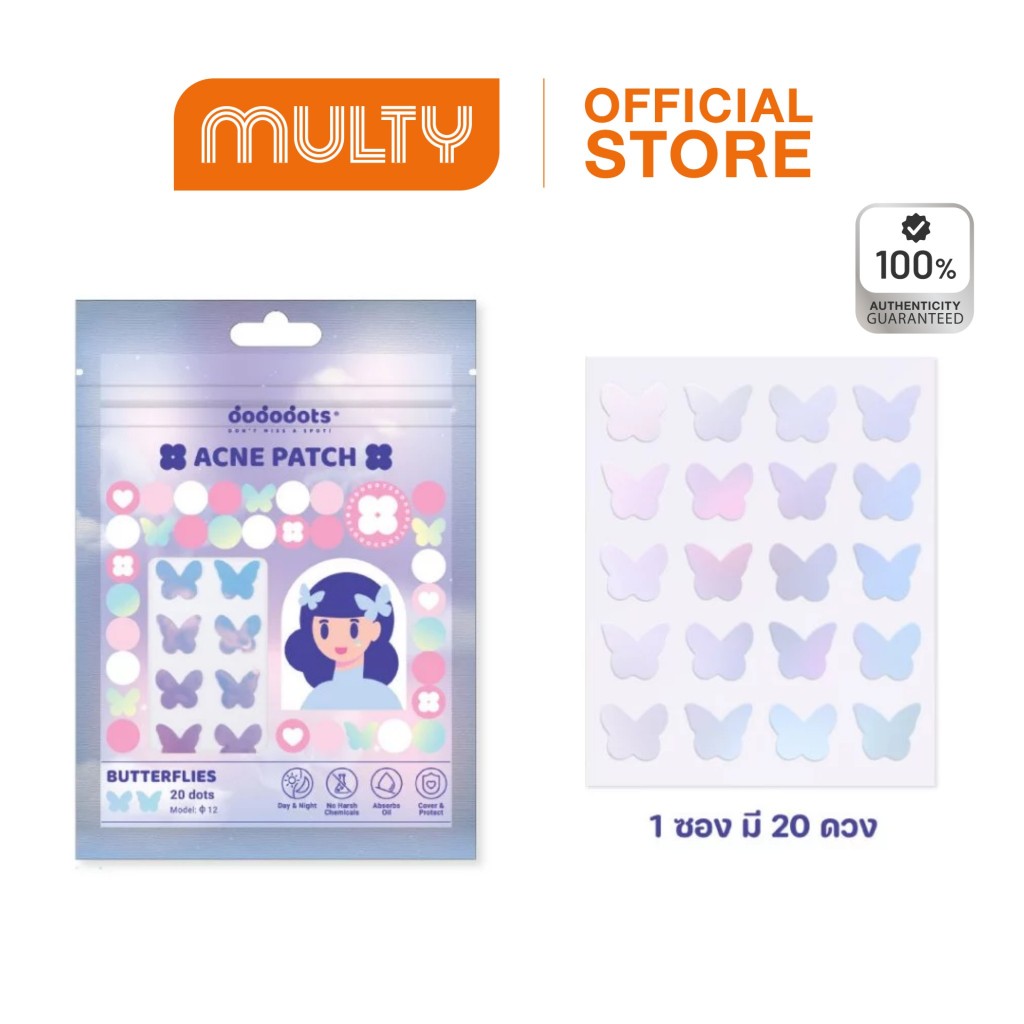 DODODOTS Acne Patch Butterflies แผ่นแปะสิวไฮโดรคอลลอยด์ ลายบัตเตอร์ฟลาย 20 ชิ้น
