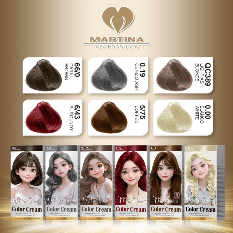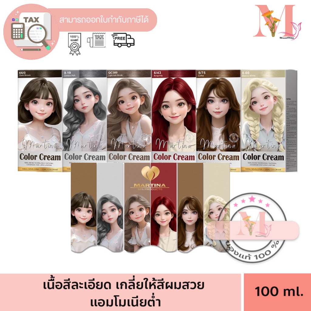สีย้อมผม มาร์ทีน่า Martina Color Cream มาทีน่า สีเคราติน ออร์แกนิค 100 ml.