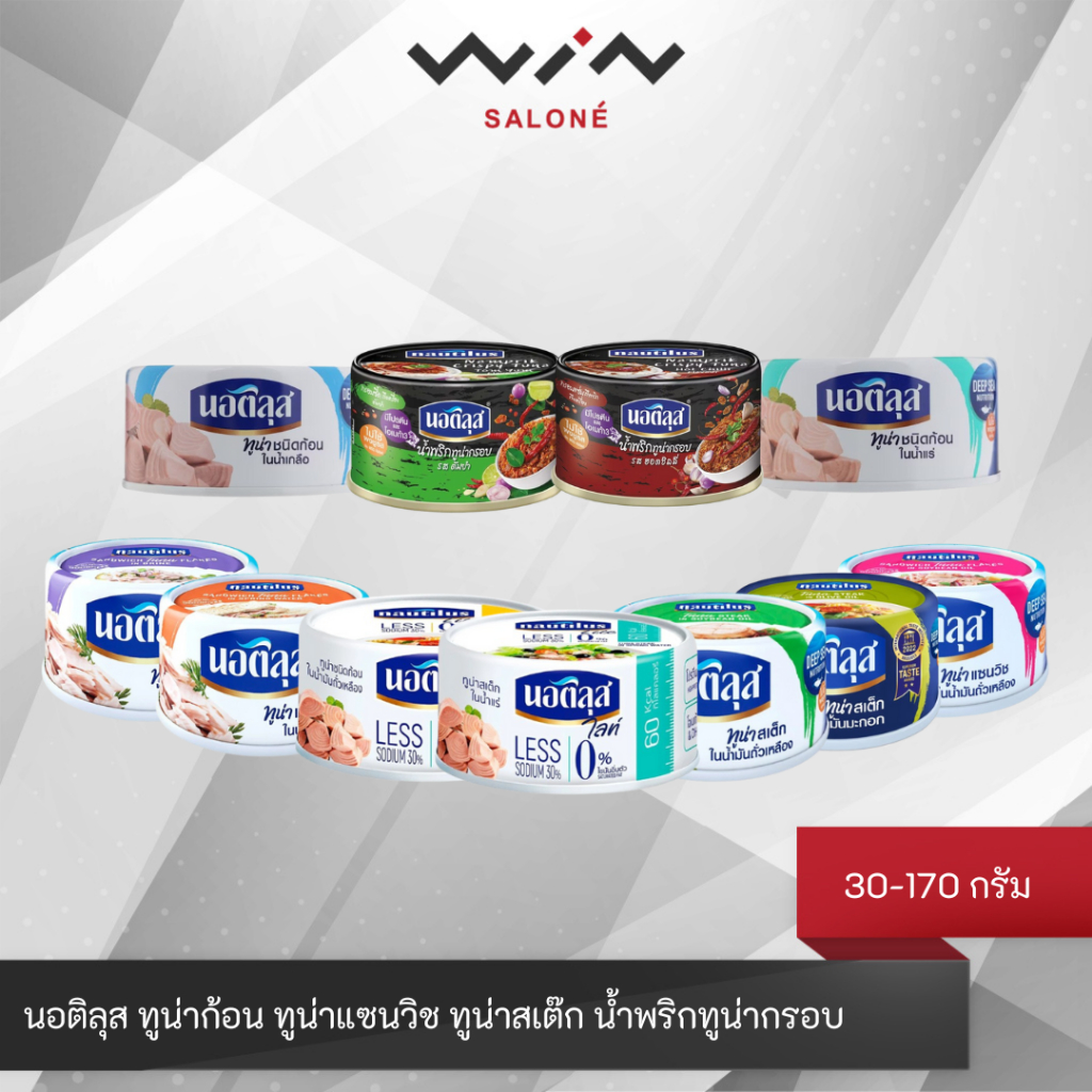 Nautilus นอติลุส ทูน่ากระป๋อง น้ำพริกทูน่ากรอบ มีให้เลือกหลายสูตร ขนาด 30 กรัม - 170 กรัม