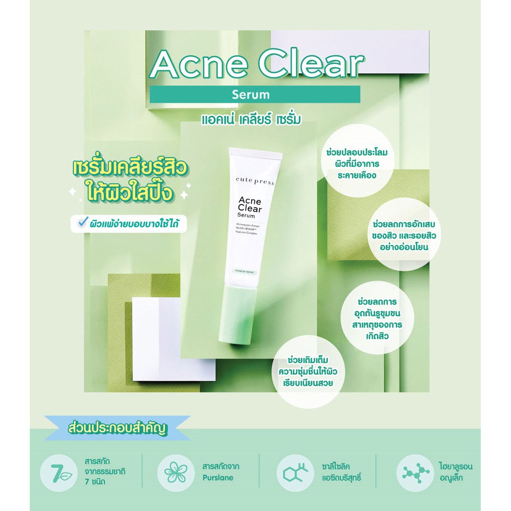 🌟 เซรั่ม เข้มข้น แก้ปัญหาสิว คิวท์เพรส CUTE PRESS ACNE CLEAR SERUM 30ml.