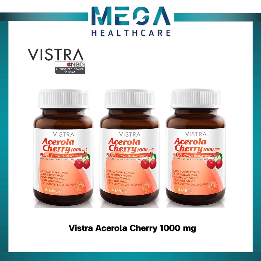 ((ซื้อVistra3ขวด)) Vistra Acerola Cherry วิตามินซี 45 เม็ด