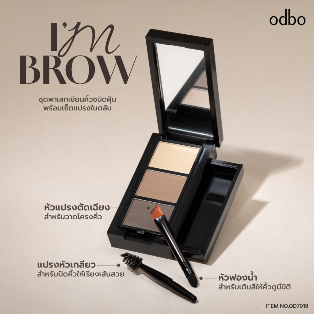 Odbo I’M Brow od7019 โอดีบีโอ พาเลทเขียนคิ้วแบบฝุ่น 3เฉดสี ในตลับเดียว มีกระจกในตัว