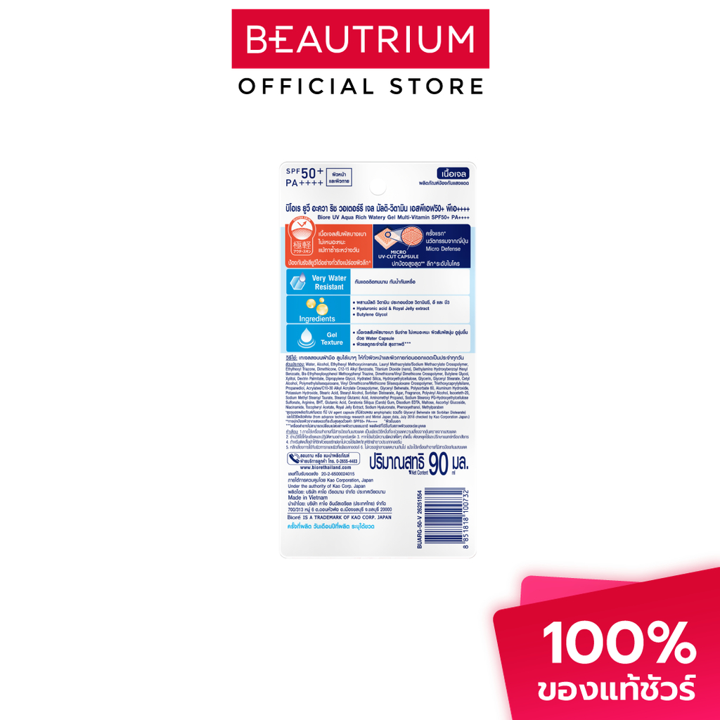 BIORE UV Aqua Rich Watery Gel Multi-Vitamin SPF50+ PA++++ ครีมกันแดด 90ml