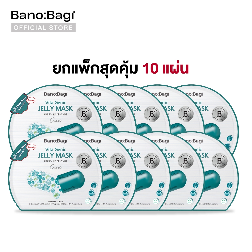 (Cica เซ็ต 10 แผ่น) BANOBAGI Vita Genic Jelly Mask Cica จำนวน 10 แผ่น บาโนบากิ
