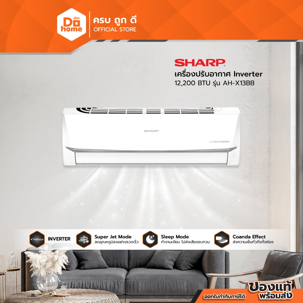 SHARP เครื่องปรับอากาศ Inverter 12,200 BTU รุ่น AH-X13BB |ZWF|
