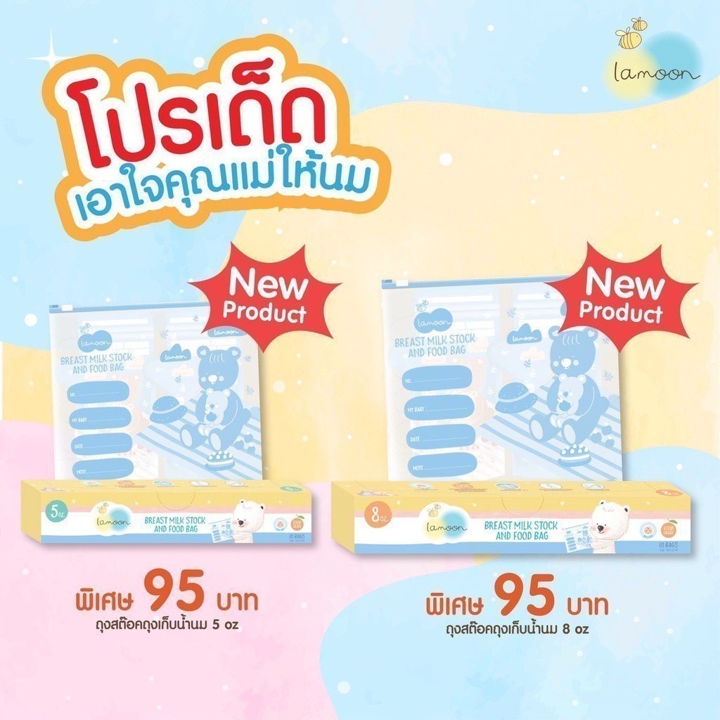 Lamoon ละมุน ถุงจัดเรียงสต็อคน้ำนม ขนาด5/8ออนซ์ (1กล่องมี 10 ถุง) ถุงจัดเก็บสต็อคน้ำนม