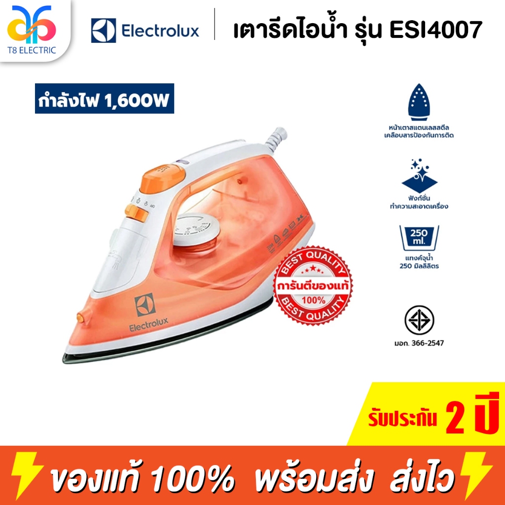 Electrolux เตารีดไอน้ำ รุ่น ESI4007 เคลือบสารกันติด กำลังไฟ 1,600 วัตต์ รับประกัน 2 ปี