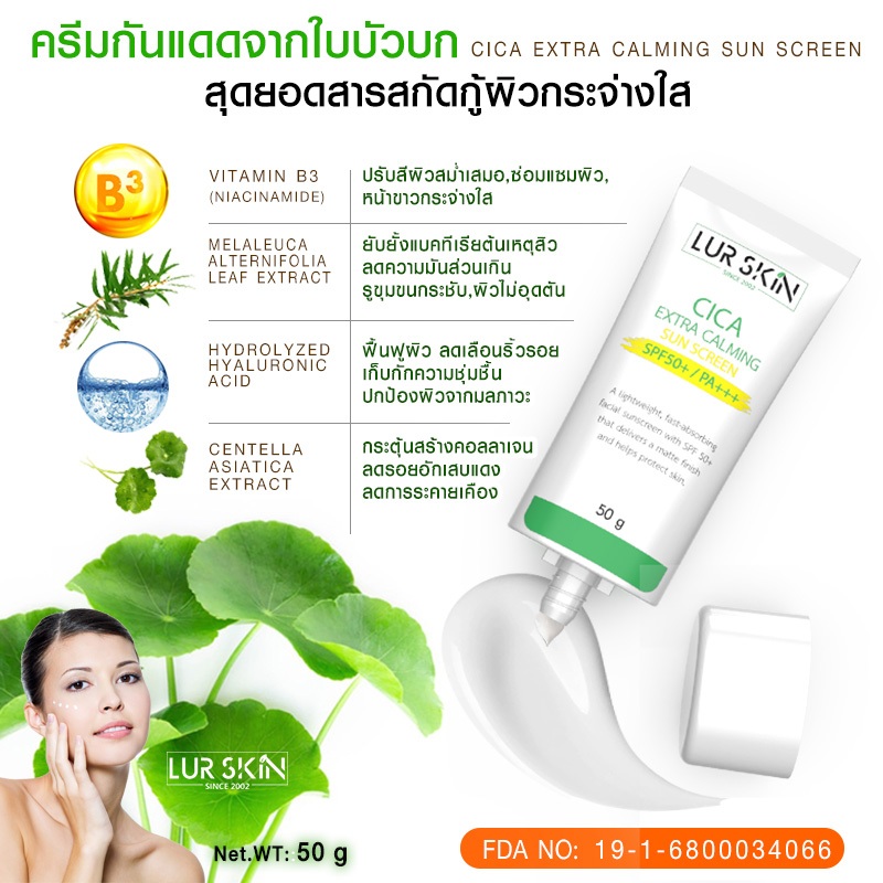 ครีมกันแดดใบบัวบก ป้องกันผิวจากแสงแดด และมลภาวะ CICA EXTRA CALMING SUN SCREEN SPF50+ PA+++ 50g.1ชิ้น