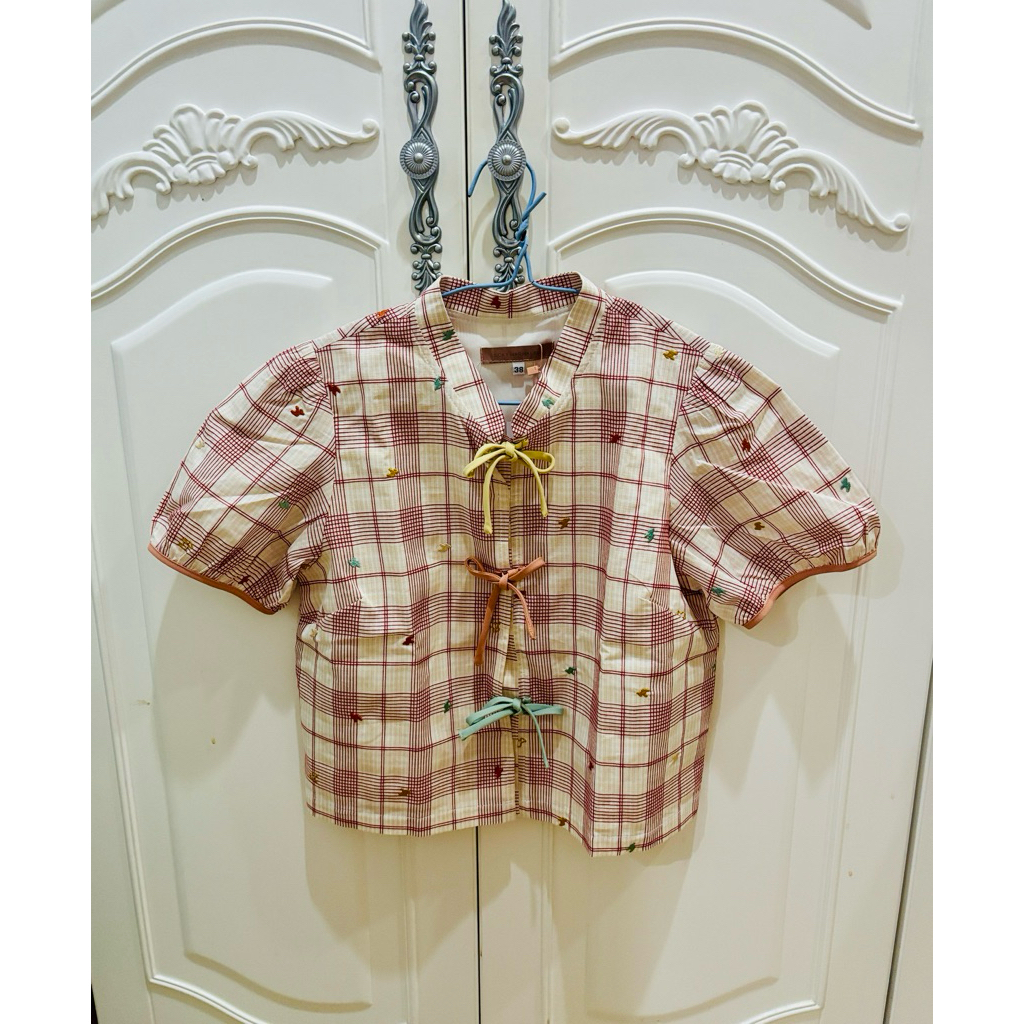 เสื้อคอจีนลายสก็อตสีแดง อก 38
