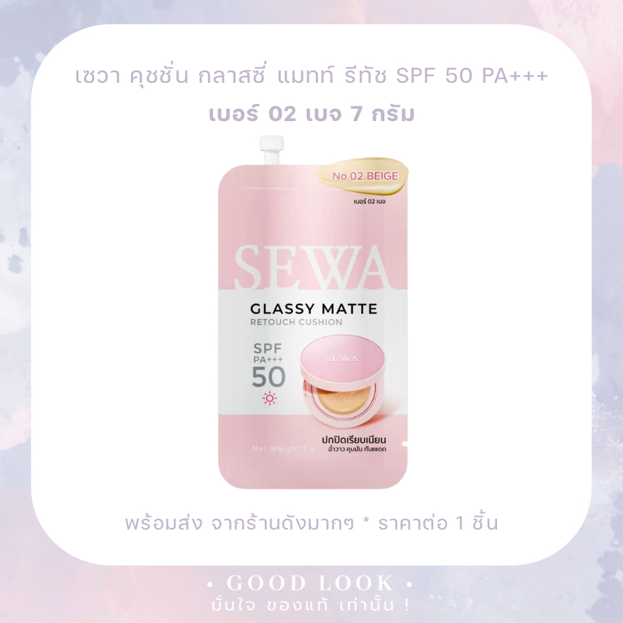 Sewa เซวา คุชชั่น กลาสซี่ แมทท์ รีทัช เอสพีเอฟ 50 พีเอ+++ เบอร์ 02 เบจ 7 กรัม