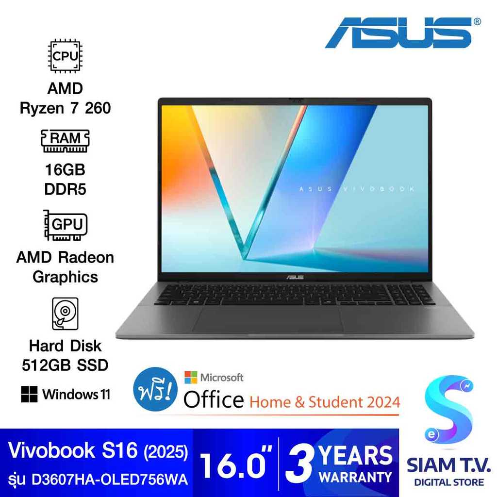 NOTEBOOK (โน้ตบุ๊ค) ASUS VIVOBOOK S16 D3607HA-OLED756WA (MATTE GRAY) โดย สยามทีวี by Siam T.V.