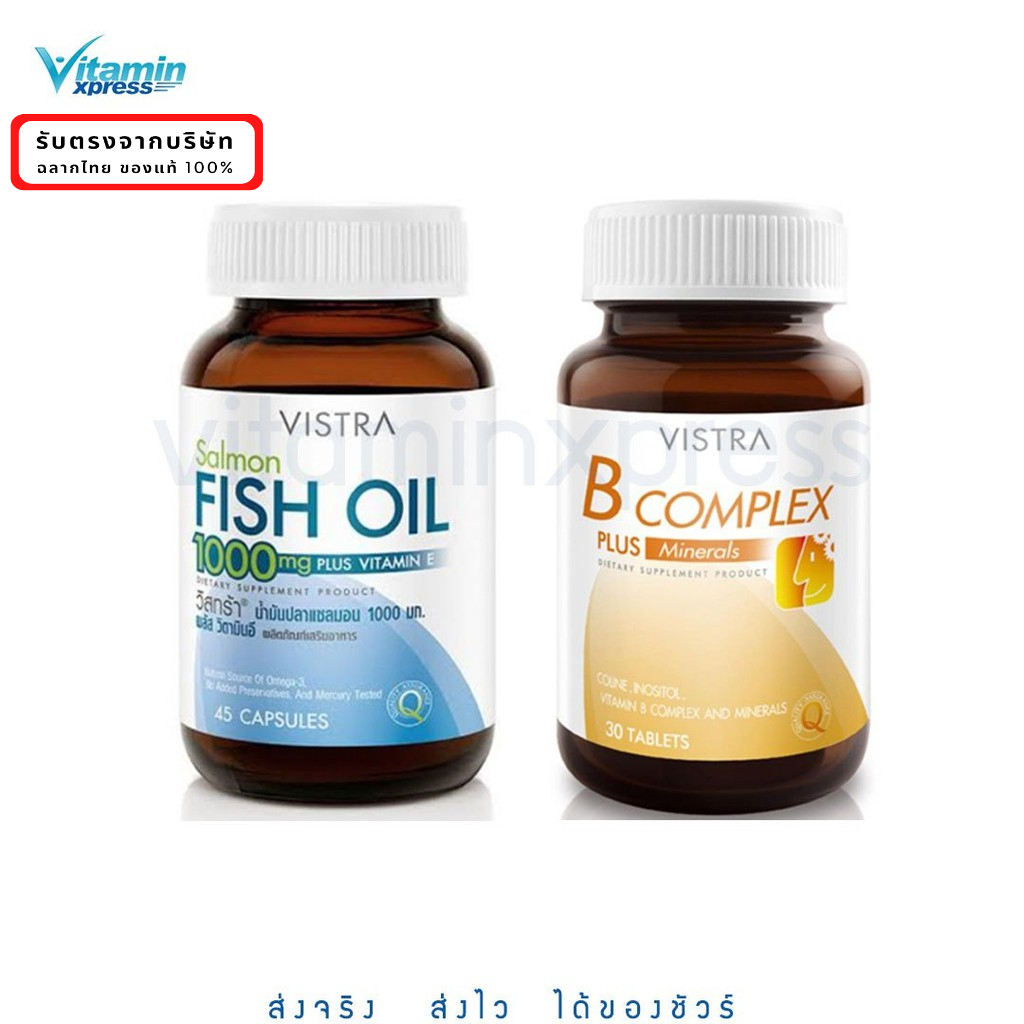 Vistra set - Salmon fish oil 45 เม็ด 1 ขวด + B complex 30 เม็ด วิตามินบี วิสทร้า vitamin b น้ำมันปลา