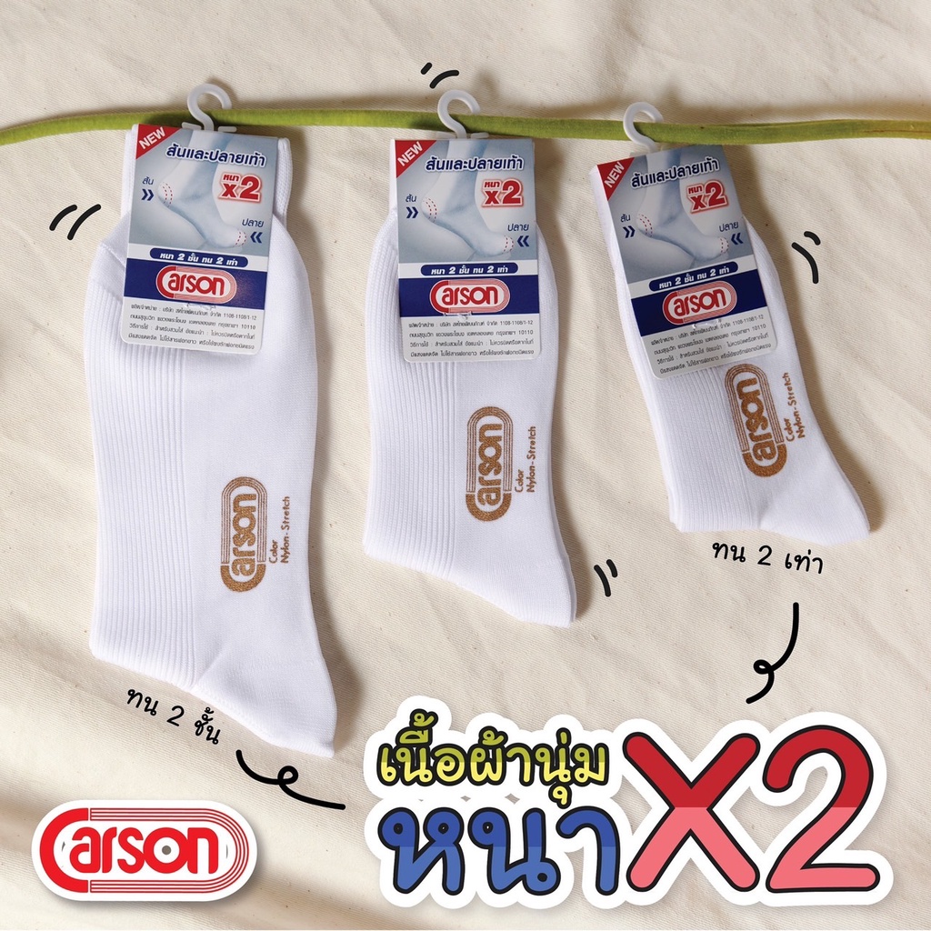 ถุงเท้านักเรียน carson ข้อยาว ข้อสั้น พื้นหนา 2 ชั้น ทน 2 เท่าถุงเท้านักเรียน คาร์สัน ไนล่อน ข้อยาว สีขาว