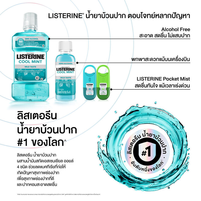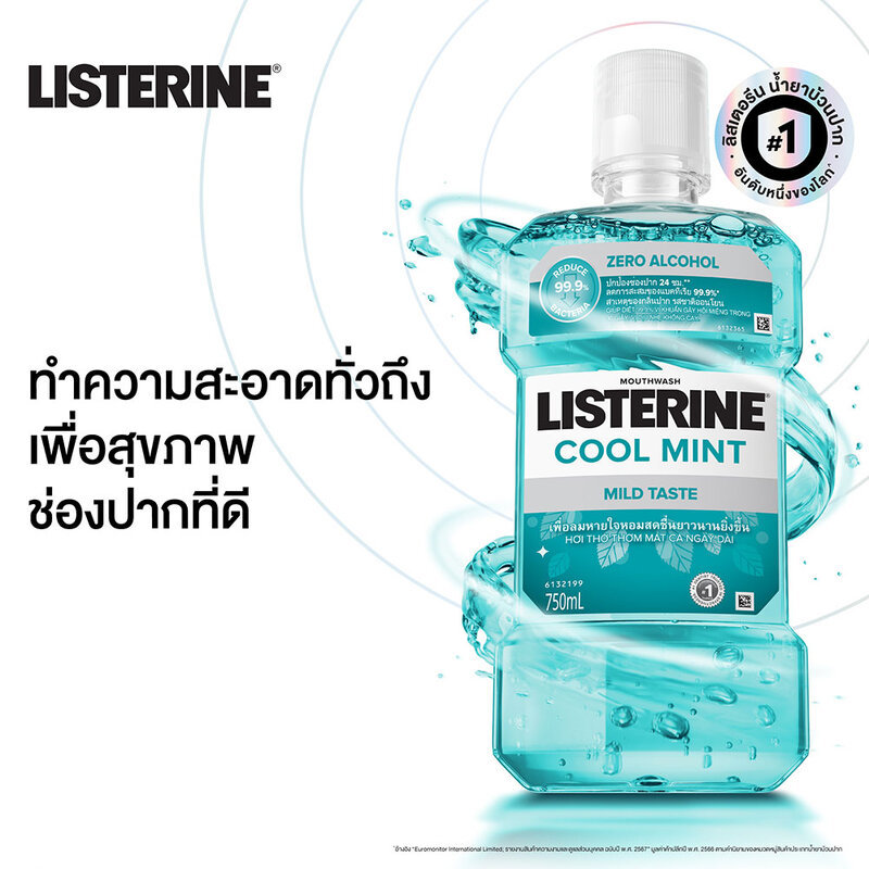 Listerine Mouthwash Coolmint Zero 750ml ลิสเตอรีน น้ำยาบ้วนปาก คููลมินต์ ซีโร่.