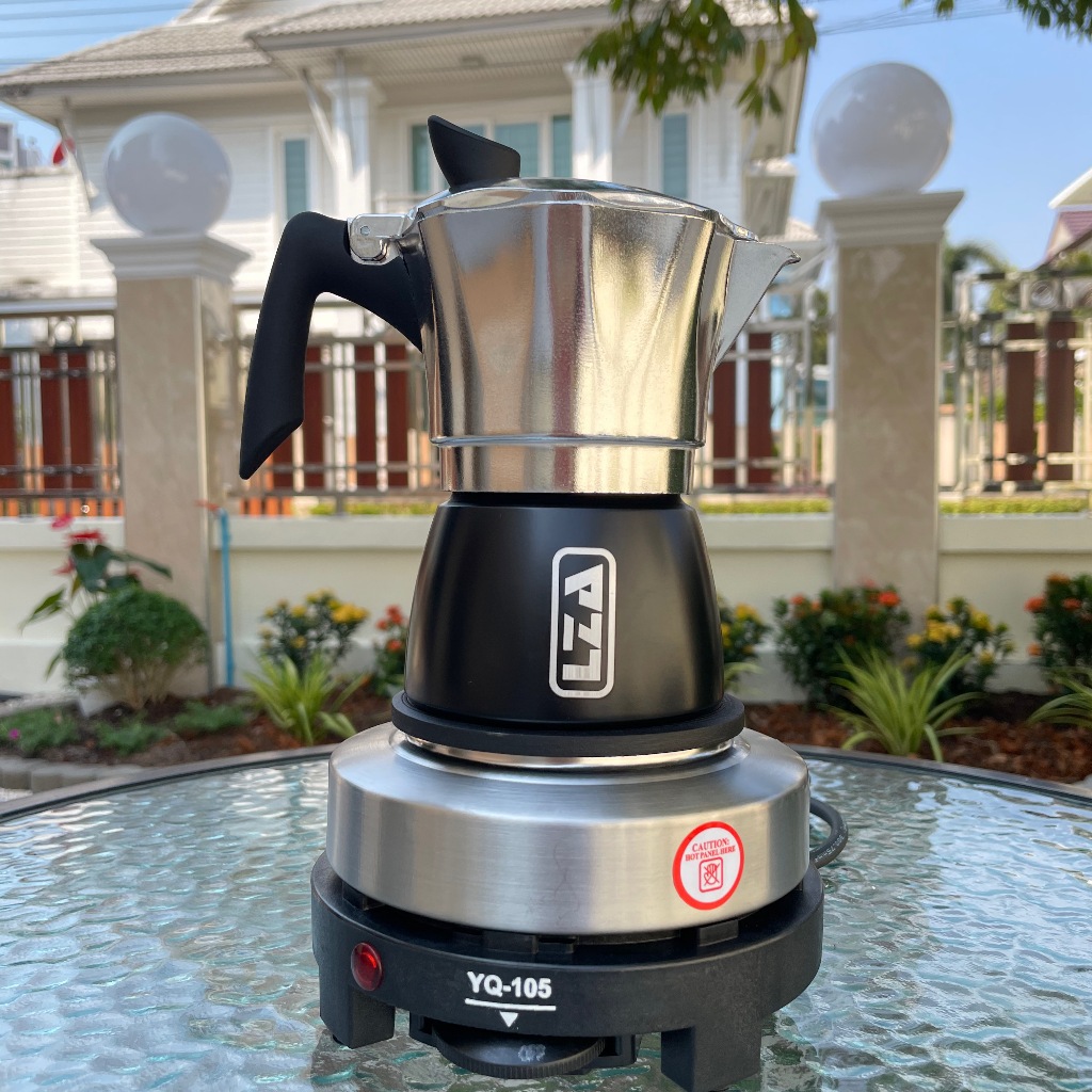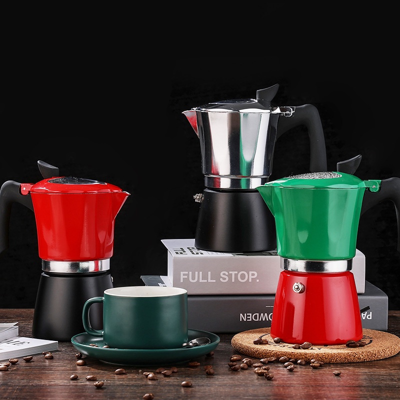lzaหม้อต้มกาแฟแน้นคุณภาพสินค้า Moka Pot (4สี)รุ่นK92ต้มกาแฟขนาด6คัพ300mlและ3คัพ150ml.สินค้าคุณภาพเกรดA ที่จับทนความร้อน.