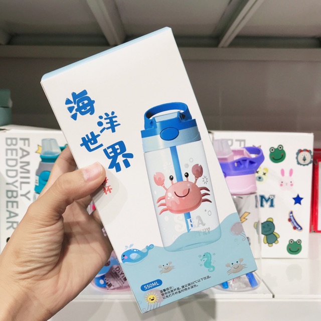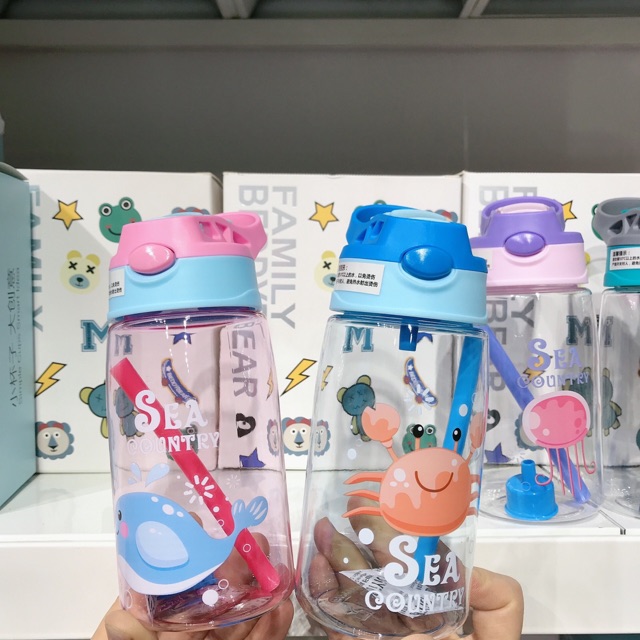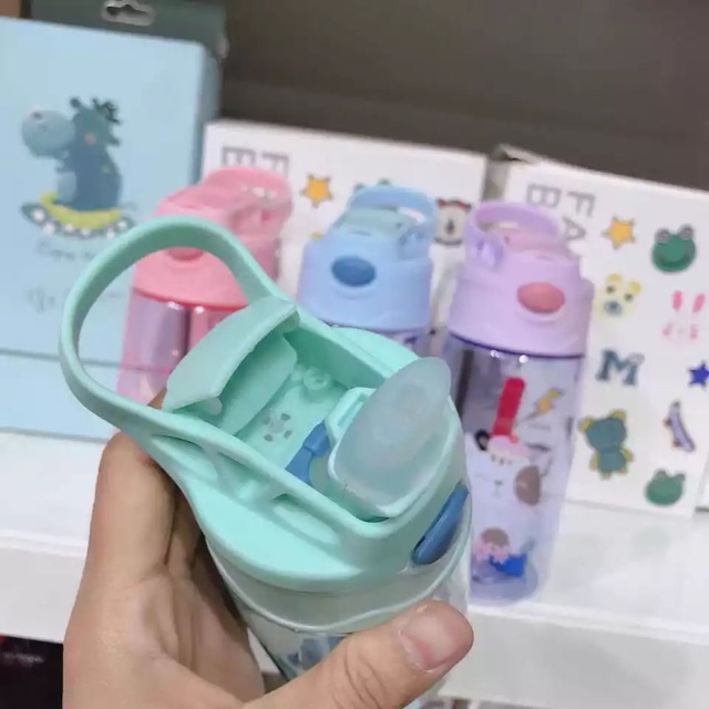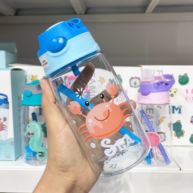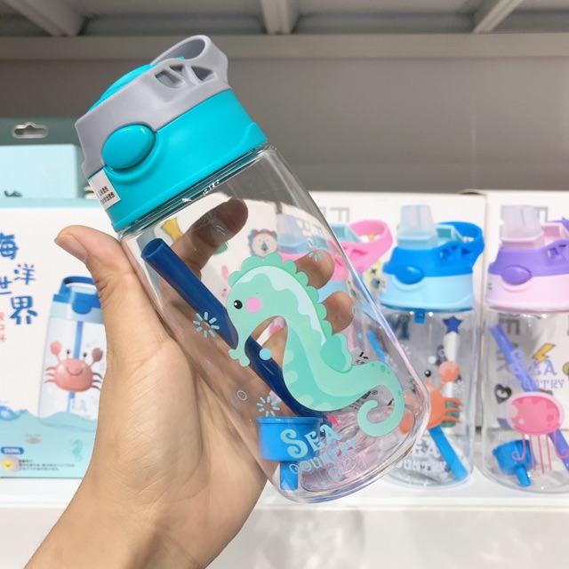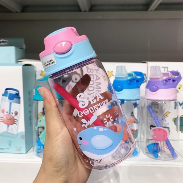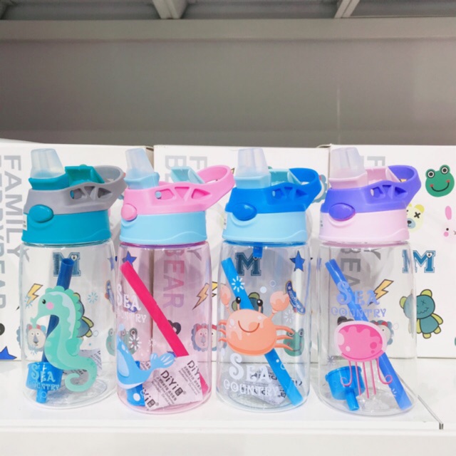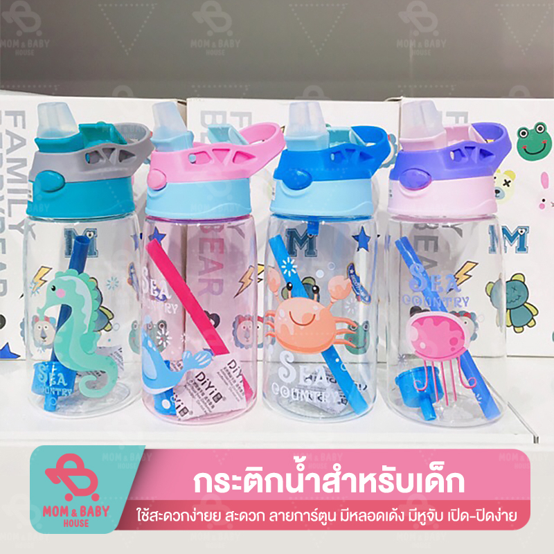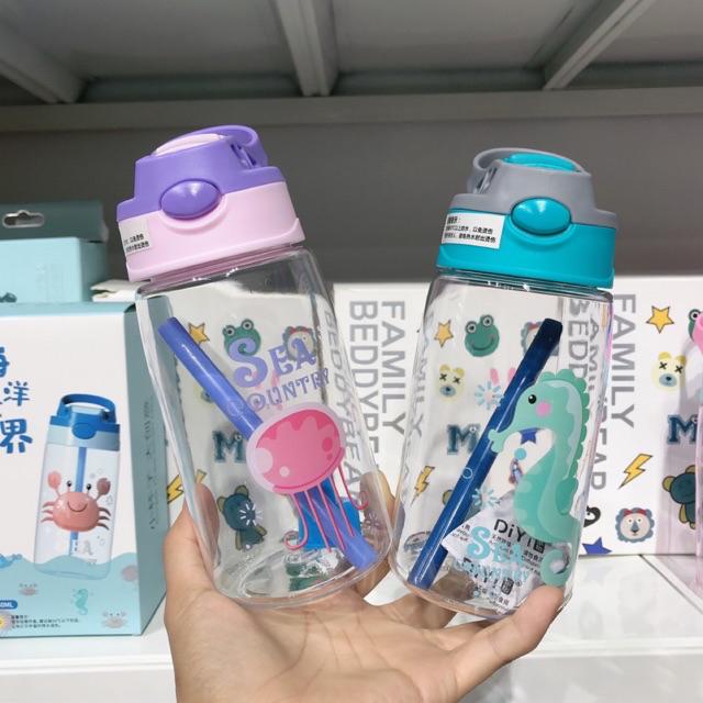 ขวดน้ำ 550ml. ขวดน้ำเด็กไปโรงเรียน แก้วน้ำเด็ก ตกไม่แตก สีสันสวยงาม ลายการ์ตูน มีหลอดในตัว กดปุ่มฝาเด้ง กระติกน้ำ
