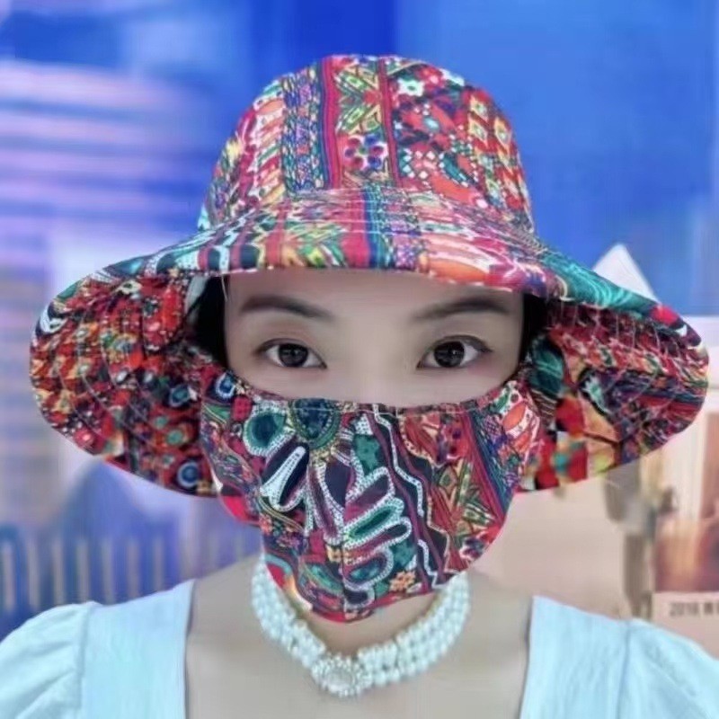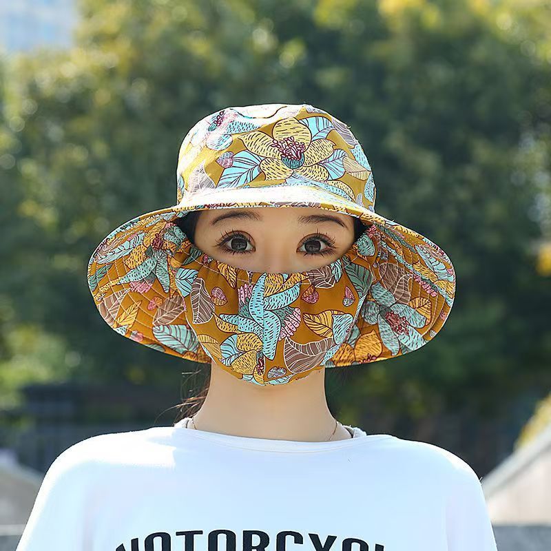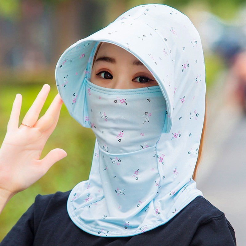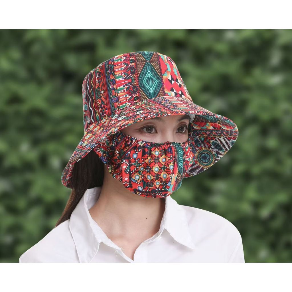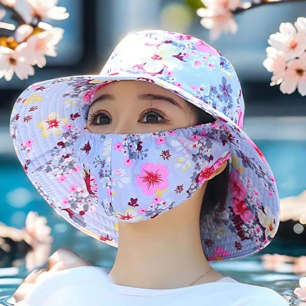 หน้ากาก/หมวกกันแดดในตัวสำหรับผู้หญิง ป้องกันแสงแดด ปิดบังใบหน้า หมวกกันแดดระบายอากาศสำหรับฤดูร้อน