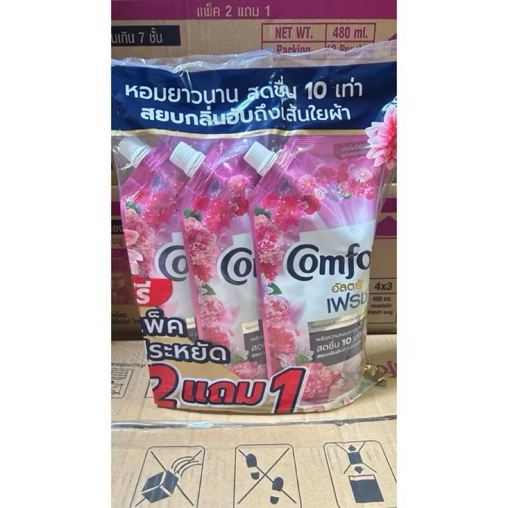 ยกลัง12ถุง น้ำยาปรับผ้านุ่มสูตรเข้มข้น คอมฟอร์ท 470-490มล