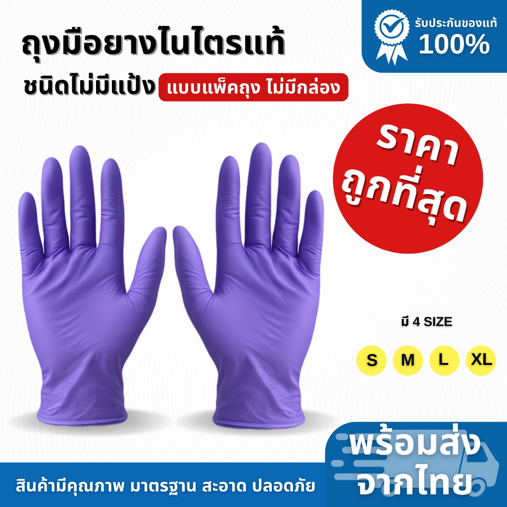 ถุงมือราคาถุกที่สุด⚡️ ถุงมือยางไ นไตรแท้ อเนกประสงค์ สีม่วง งานแพ็คถุง ยืดหนุ่นมาก พร้อมส่ง