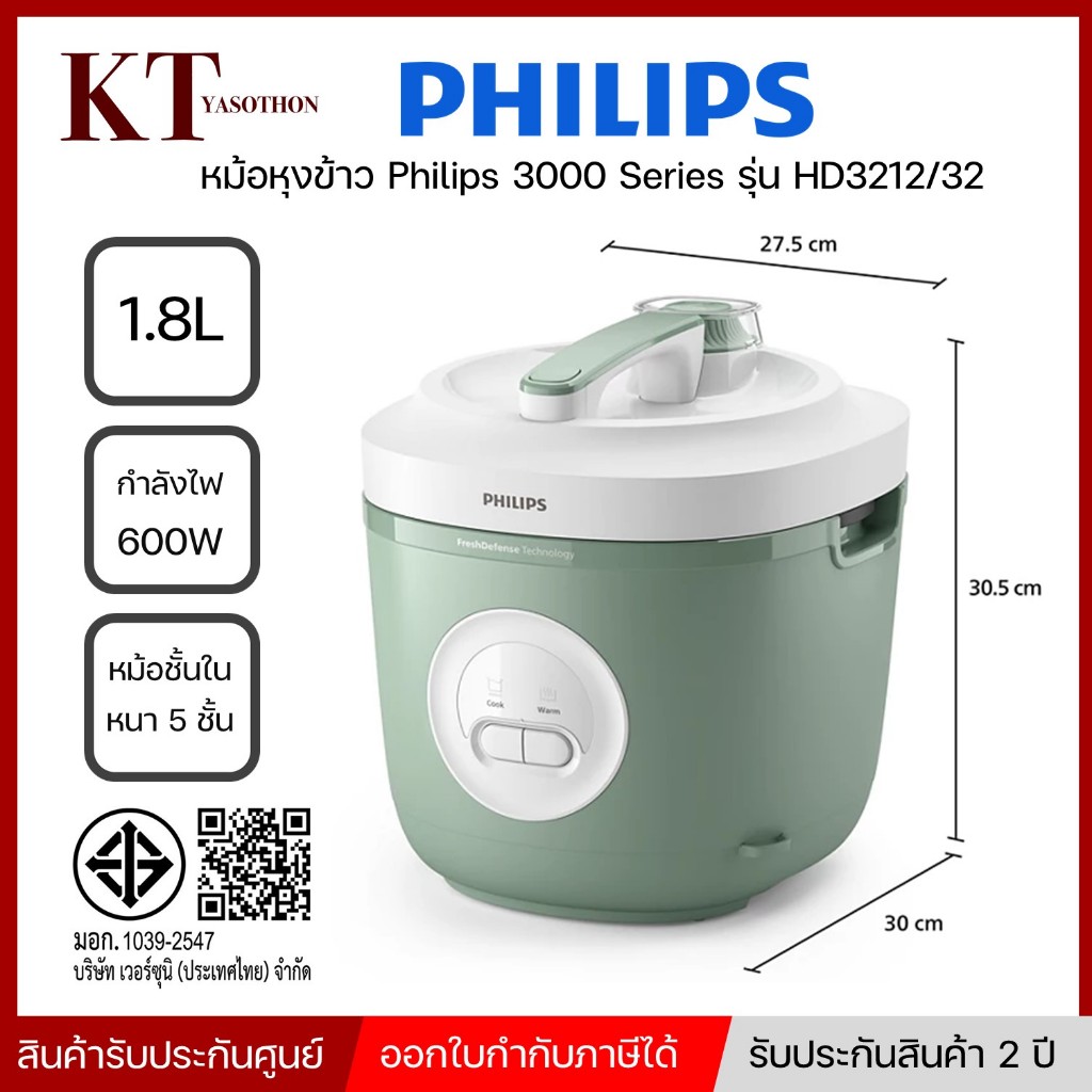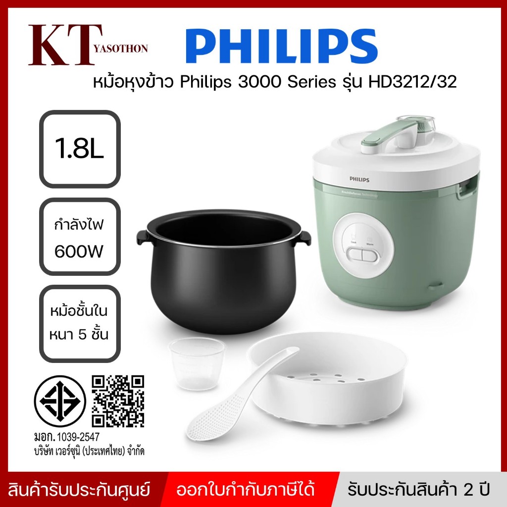 ฟิลิปส์ หม้อหุงข้าว รุ่น HD3212/32 ขนาด 1.8 ลิตร สีเขียว