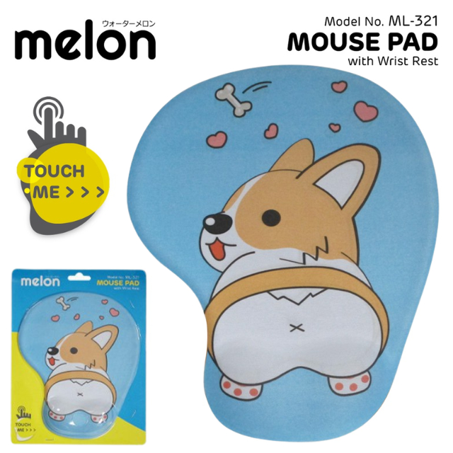 (ML-321-B-Shiba BL) MOUSE PAD แผ่นรองเมาส์แบบผ้า Melon เจลรองข้อมือลดอาการเมื่อยล้า พื้นยาง -ของแท้