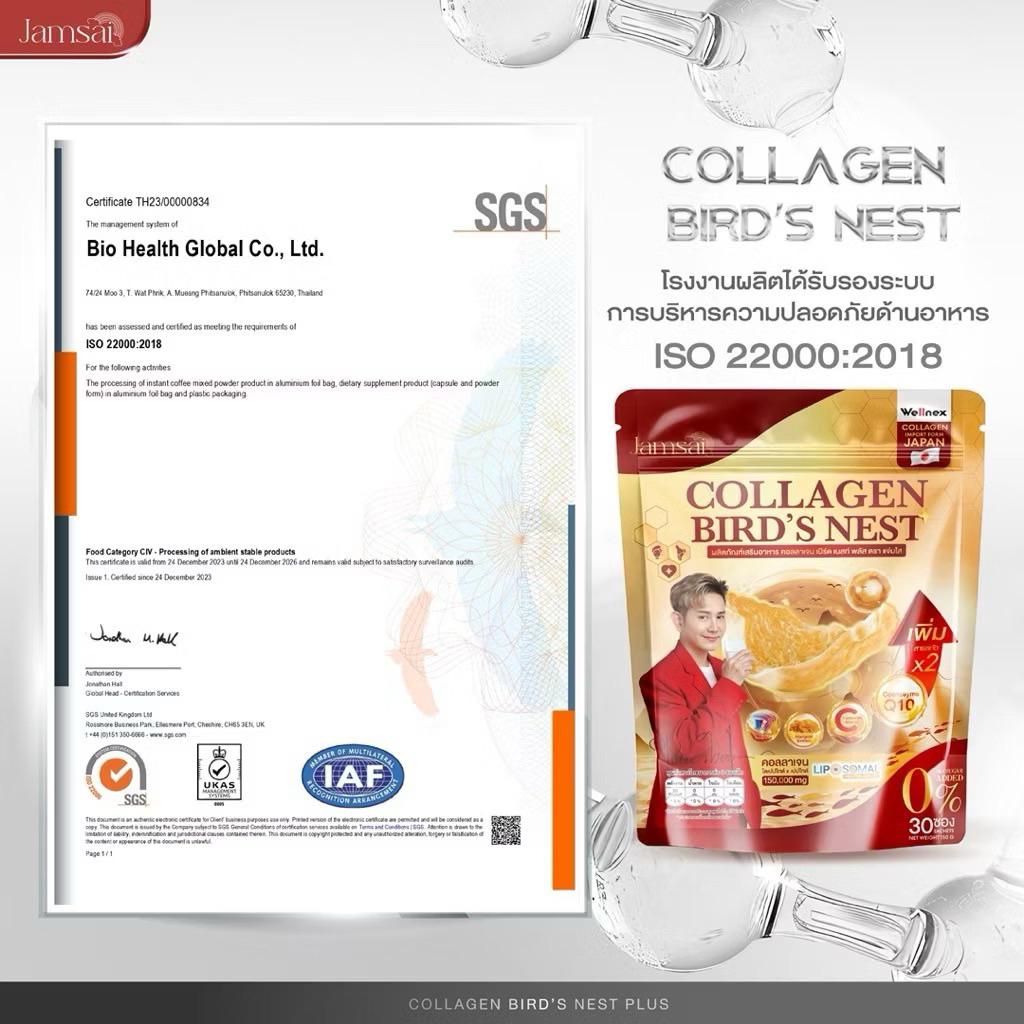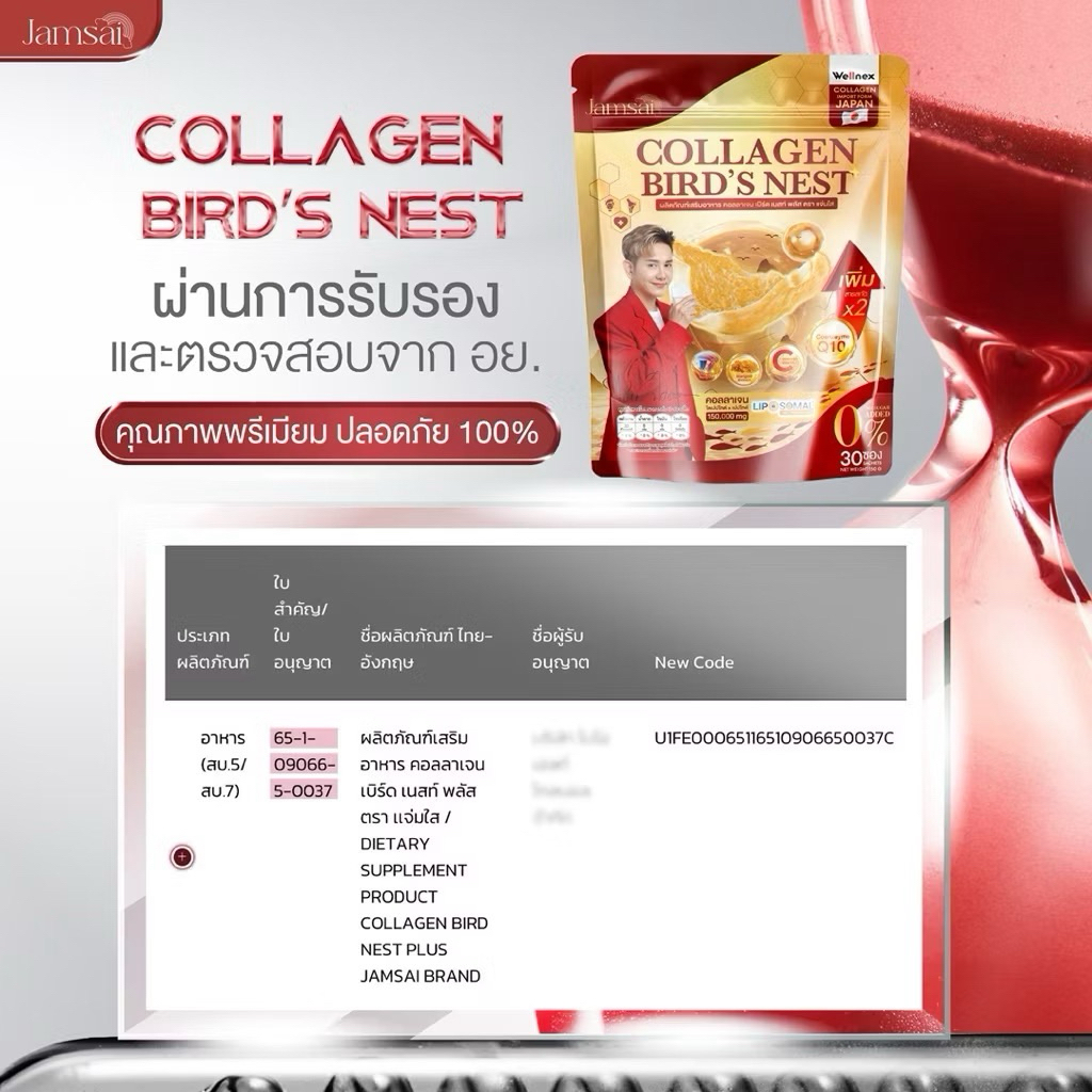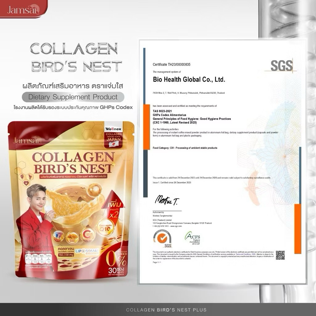 คอลลาเจนรังนก รังนกแท้แจ่มใส(ซองทอง) COLLAGEN BIRD'S NEST Jamsai