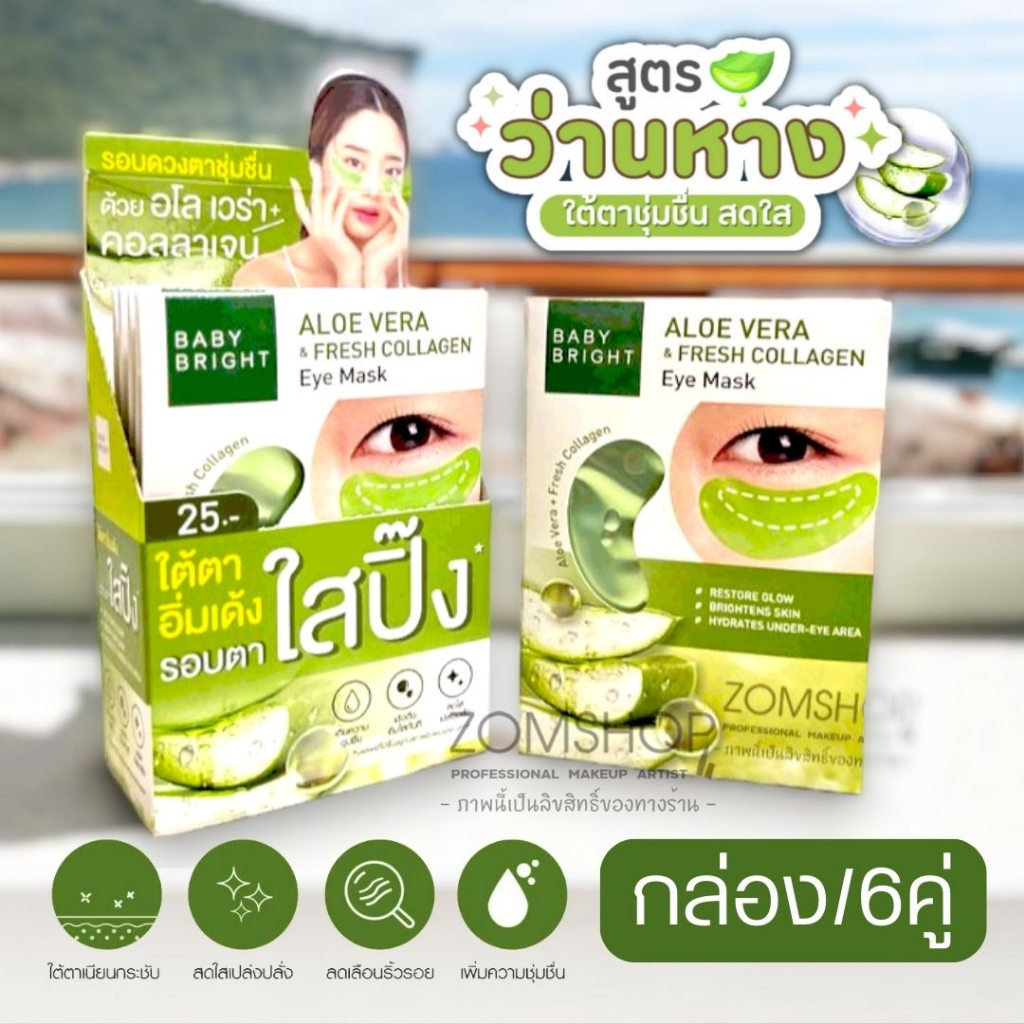 【กล่อง/6ซอง】แผ่นเจลมาส์กใต้ตา【ฟื้นฟูใต้ตาที่ดำคล้ำ ชุ่มชื่น เปล่งปลั่ง】Baby Bright Eye Mask