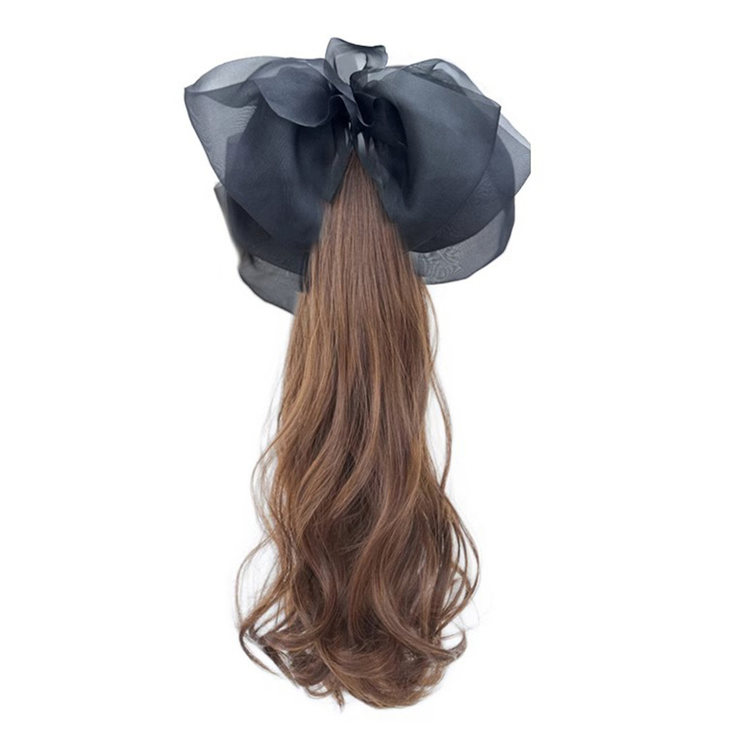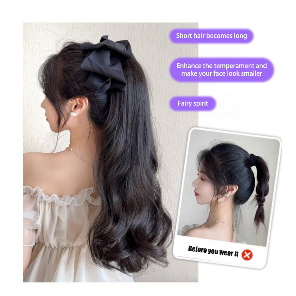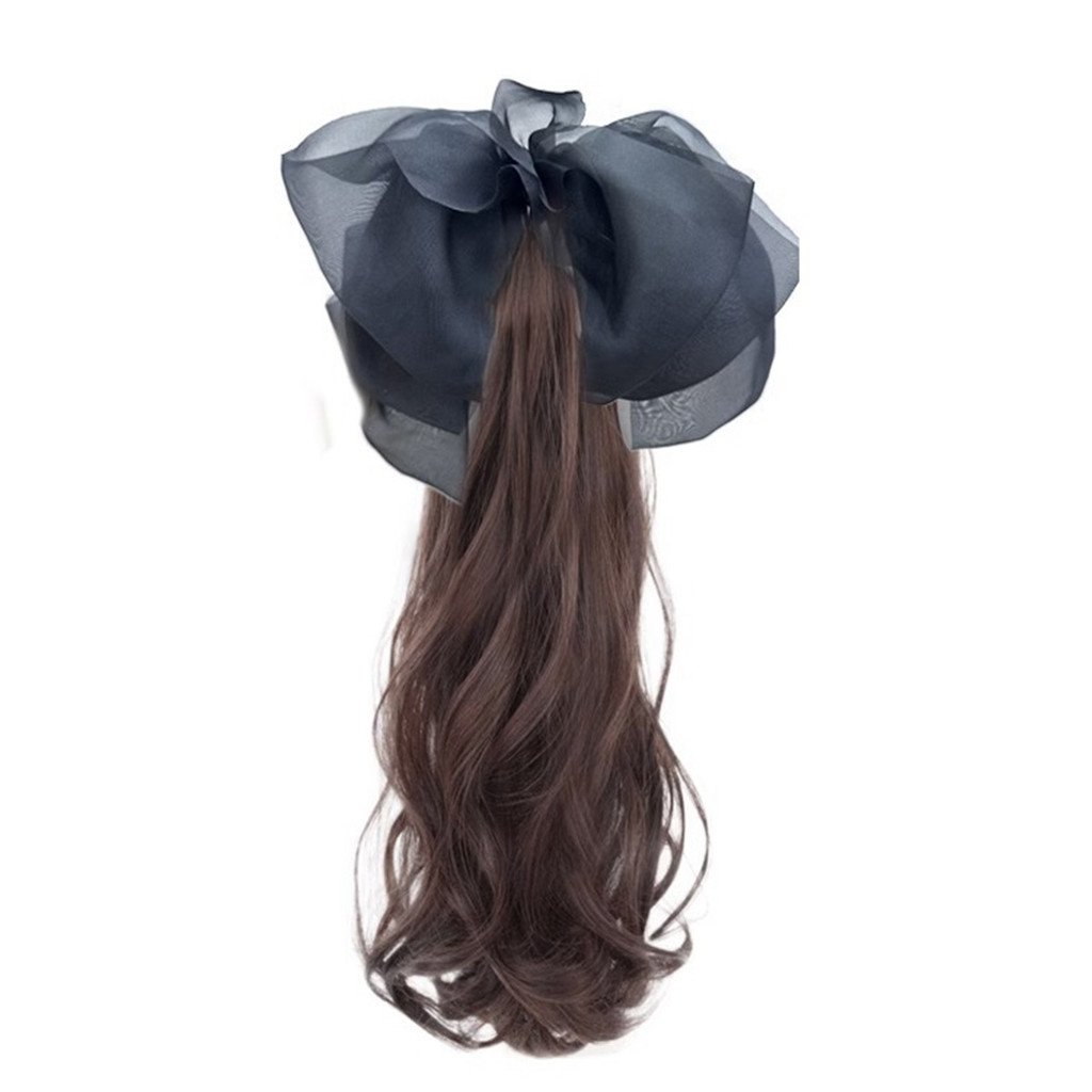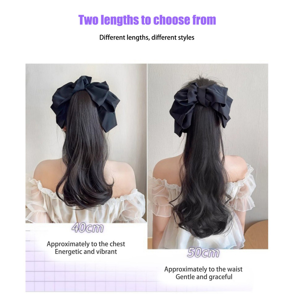 วิกผมหางม้าหญิงโบว์คลิปคลื่นลูกใหญ่วิกผมผมหางม้าสูงหญิงคลิปบนโบว์ผมยาวผมหางม้าต่ําโบว์คลื่นใหญ่