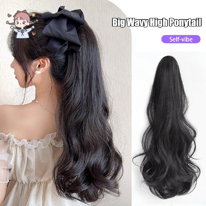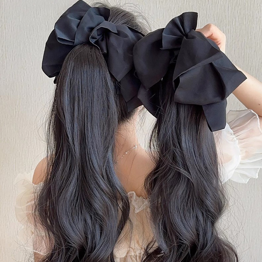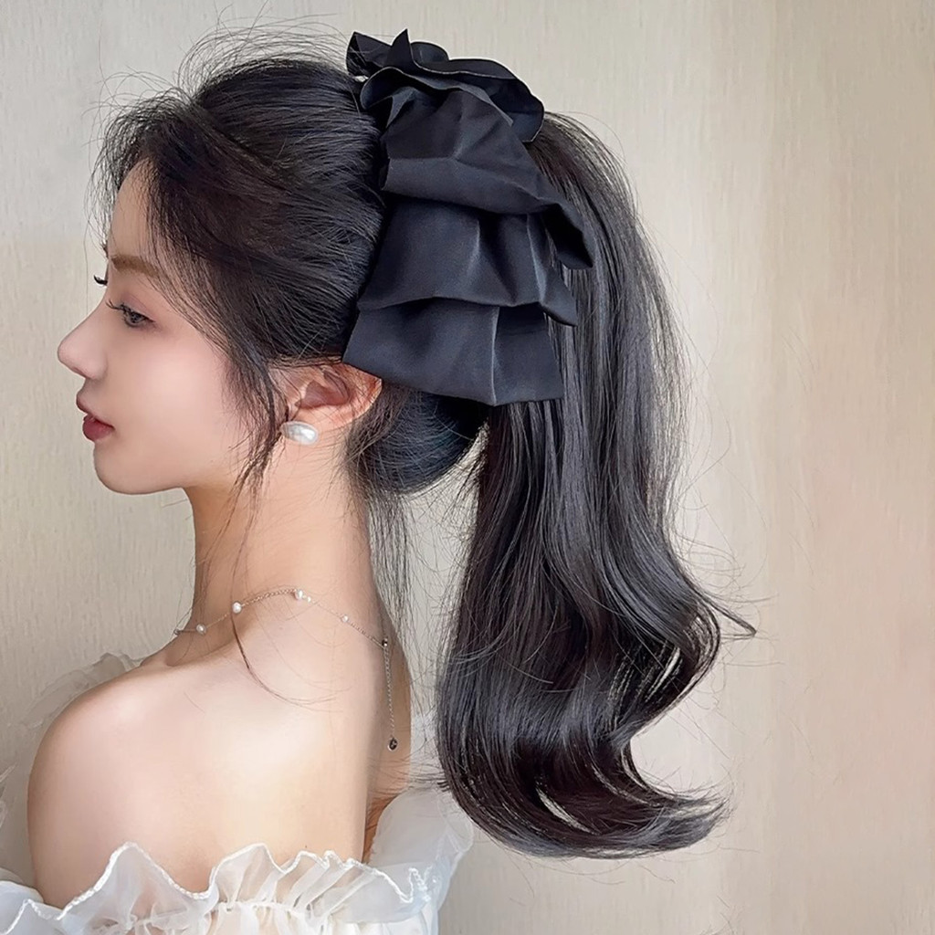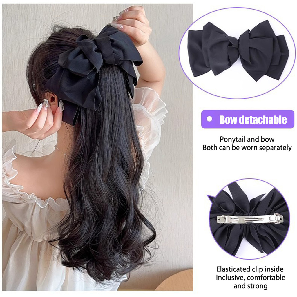 วิกผมหางม้าหญิงโบว์คลิปคลื่นลูกใหญ่วิกผมผมหางม้าสูงหญิงคลิปบนโบว์ผมยาวผมหางม้าต่ําโบว์คลื่นใหญ่