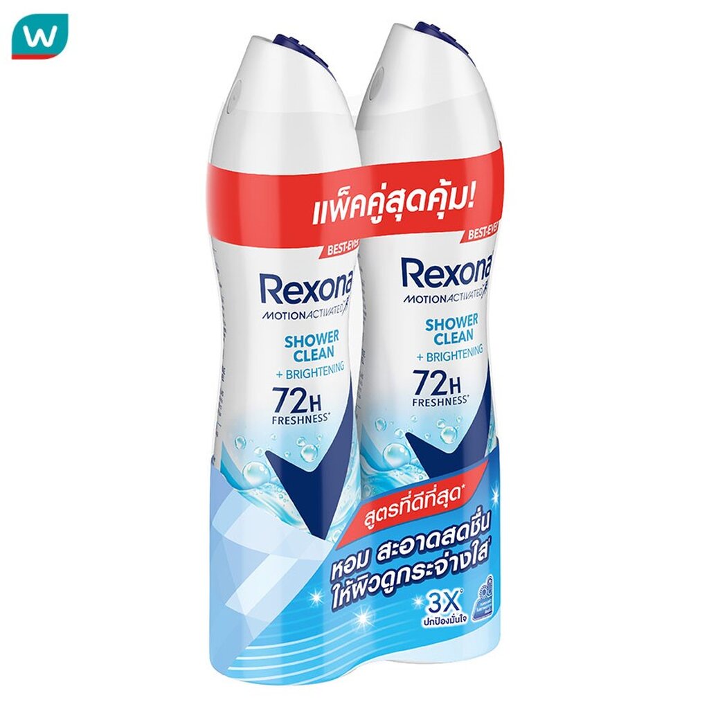 Rexona เรโซนา สเปร์ย ชาวเวอร์ คลีน ไบรท์เทนนิ่ง แอนติเพอสไปแรนท์ 135มล.แพ็คคู่ ระงับกลิ่นกาย